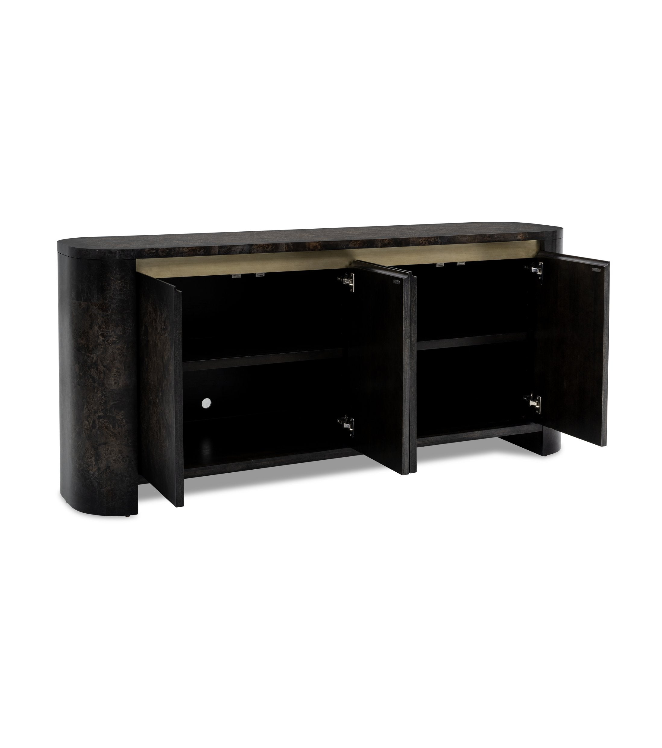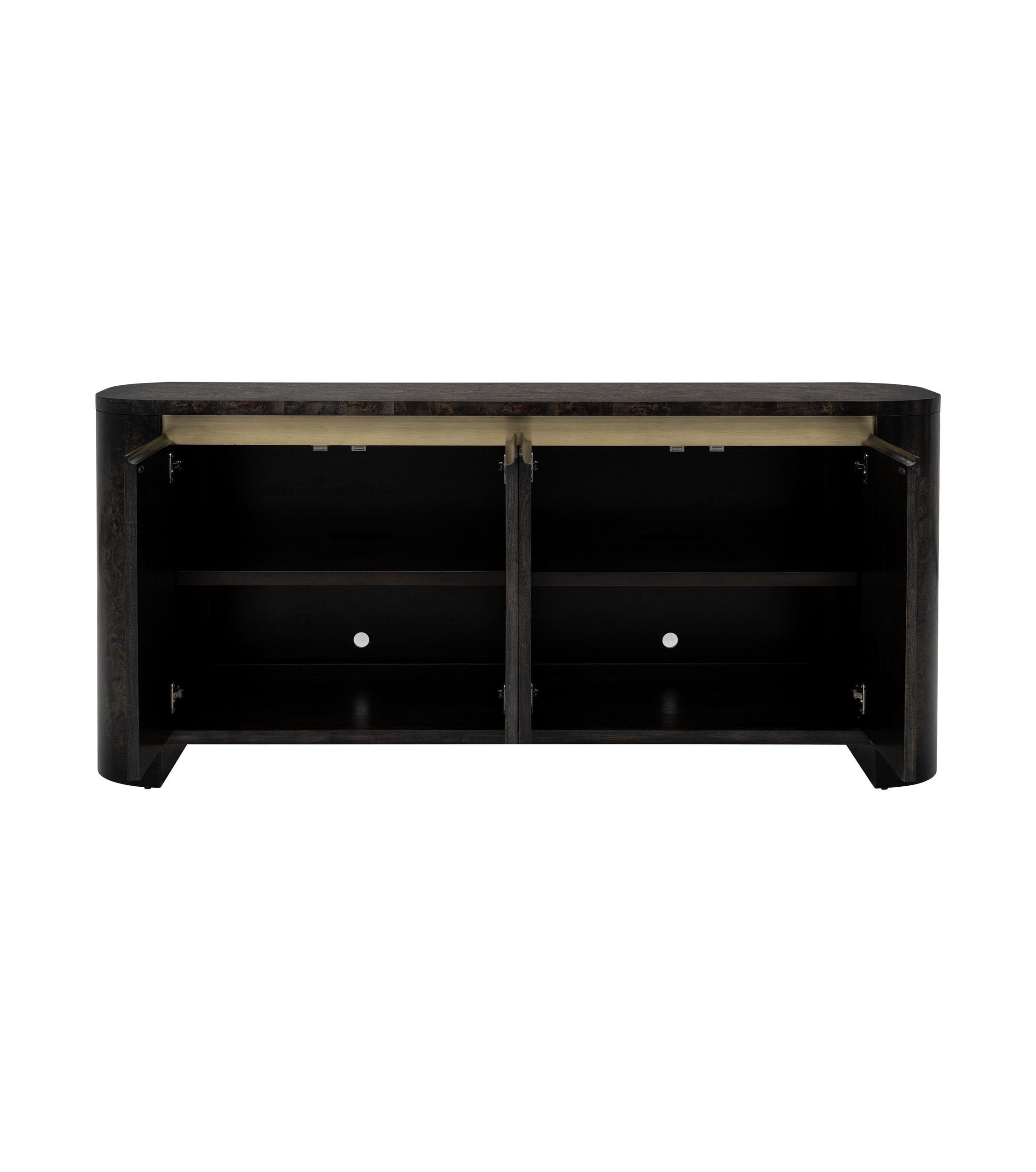 - Four doors conceal adjustable shelves for flexible storage options