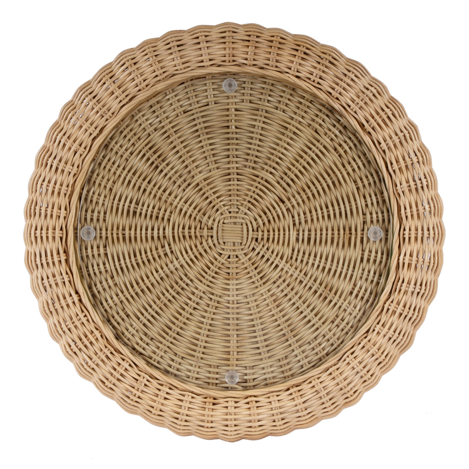 - Color: 9759404 Flora Round Glass Top & Rattan Scalloped End table - Light Brown