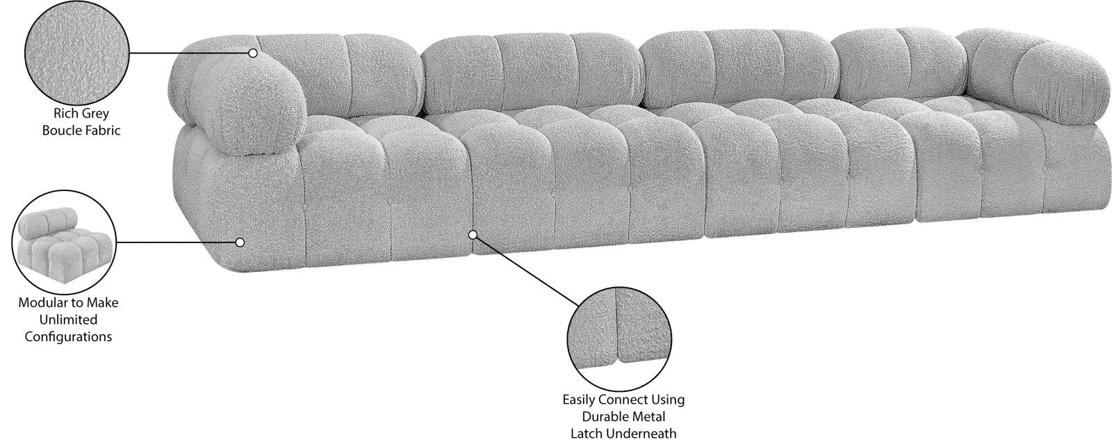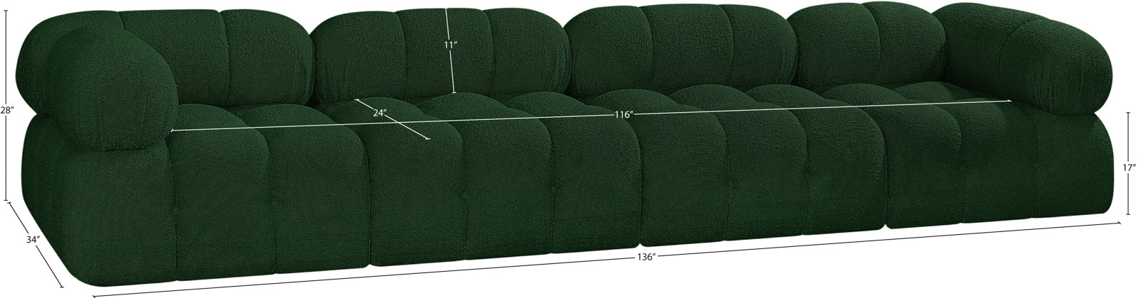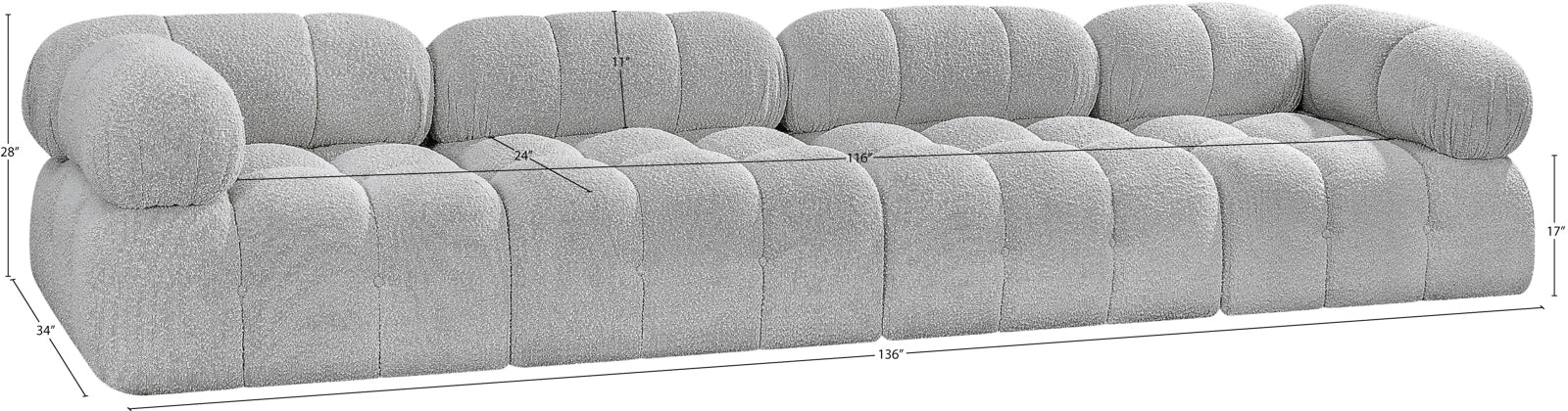 - Dimensions: 611Black-S136A Ames Black Boucle Fabric Modular Sofa - 136" W x 34" D x 28" H