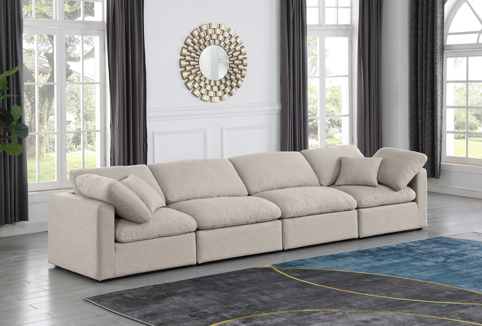 - Color: 141Beige-S140 Indulge Beige Linen Textured Fabric Modular Sofa - Beige Linen Textured Fabric
