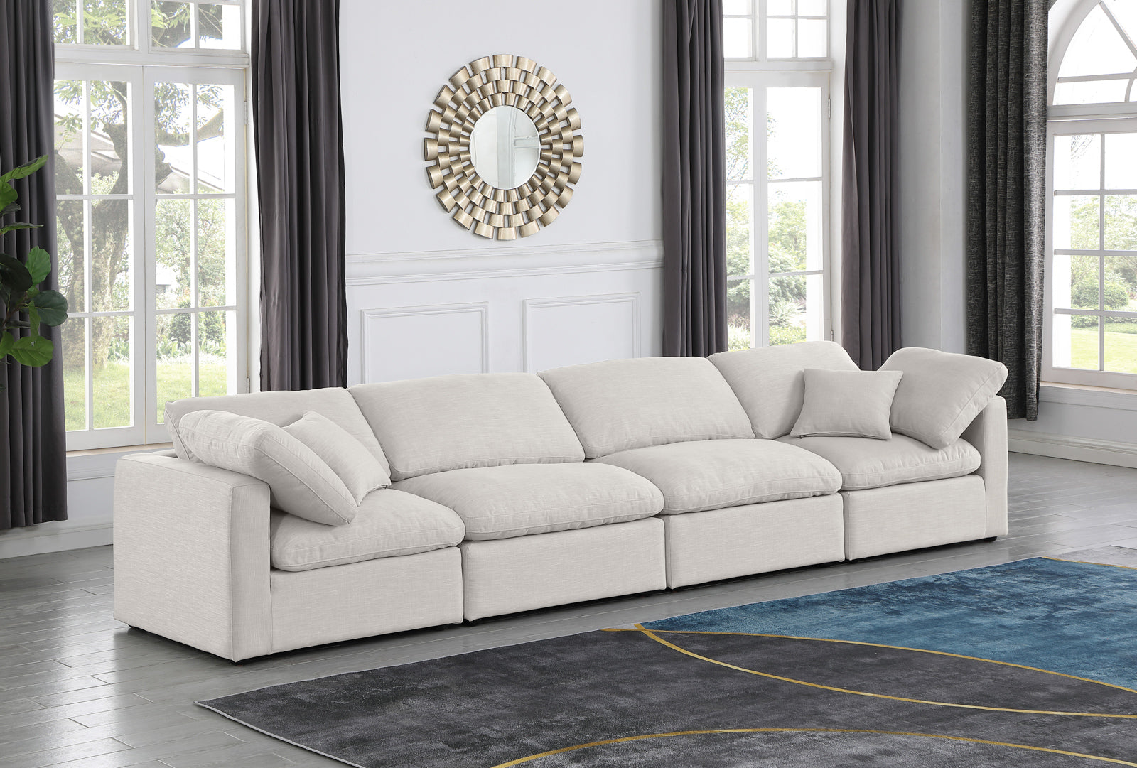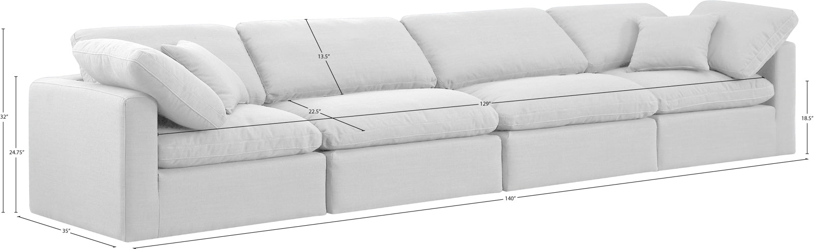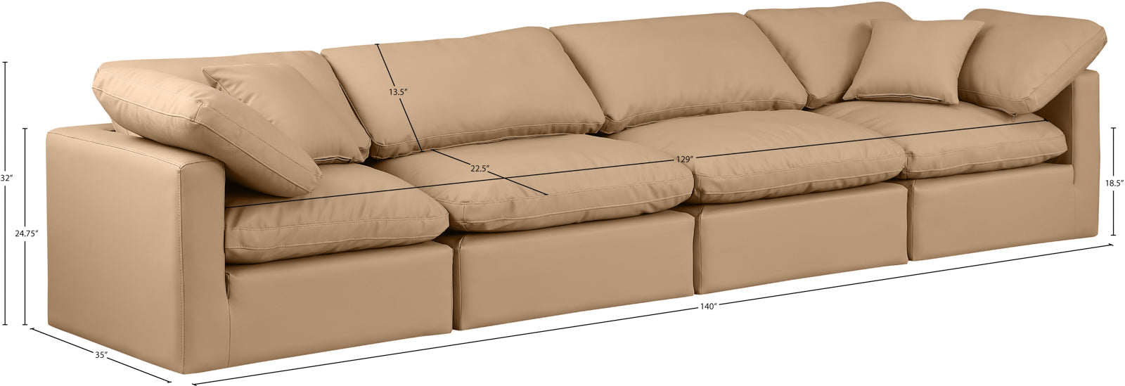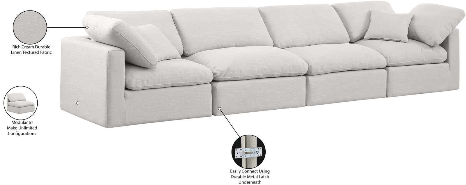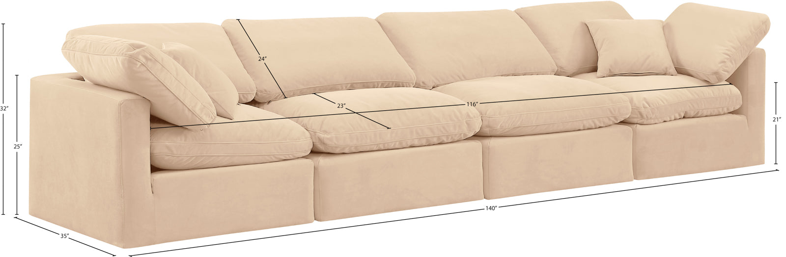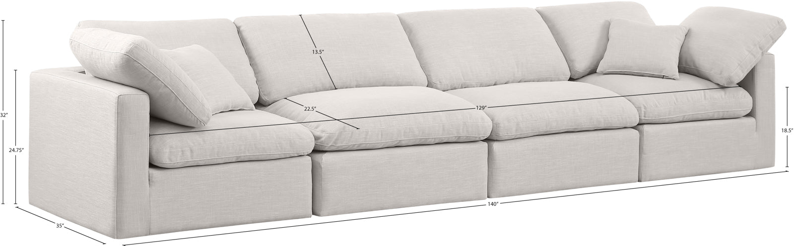 - Dimensions: 141Beige-S140 Indulge Beige Linen Textured Fabric Modular Sofa - 140" W x 35" D x 32" H