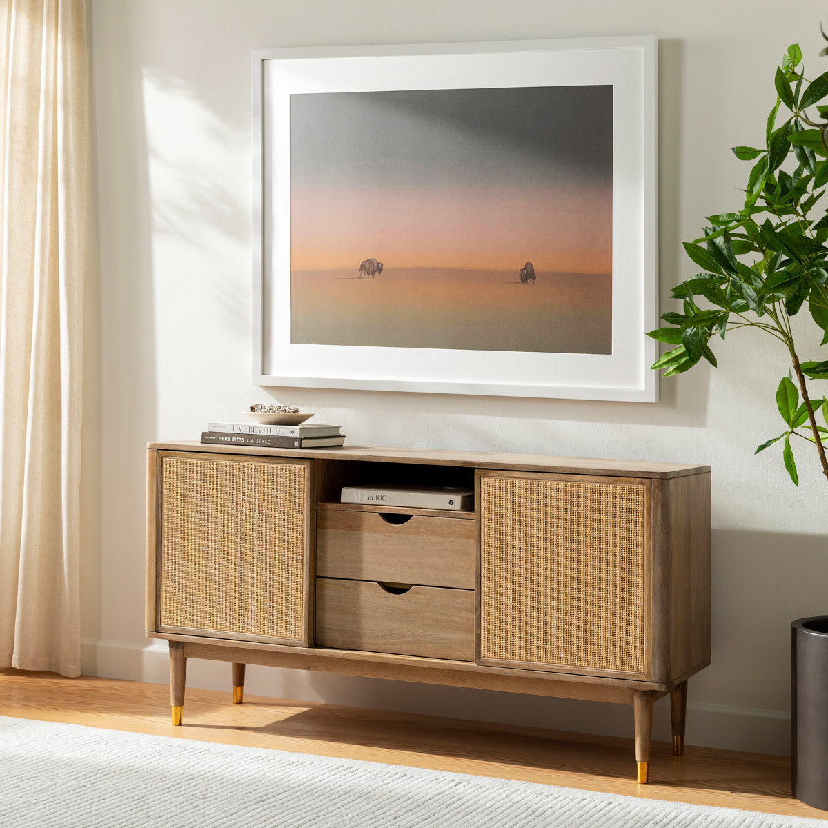 - Material: Dalma DLM-003 30"H x 58"W x 17"D Sideboard - Top: Mango Wood; Base: Mango Wood, Manufactured Wood, Rattan