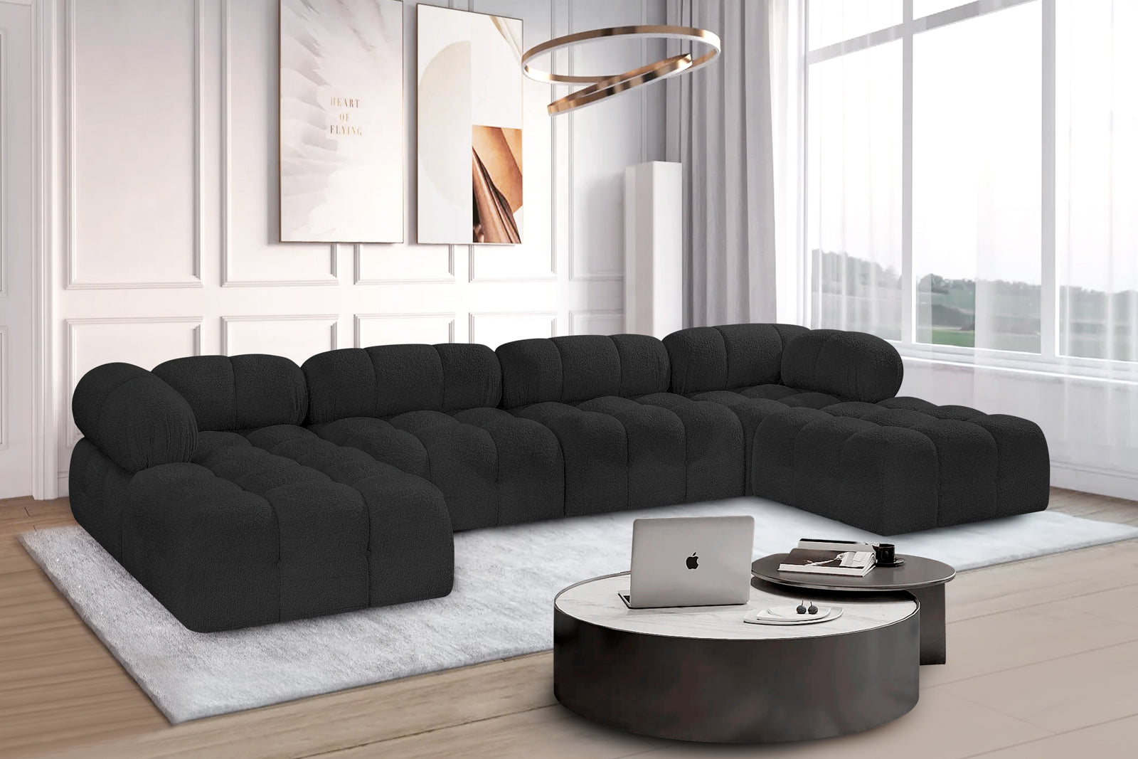- Color: 611Black-Sec6D Ames Black Boucle Fabric Modular Sectional - Black Boucle Fabric