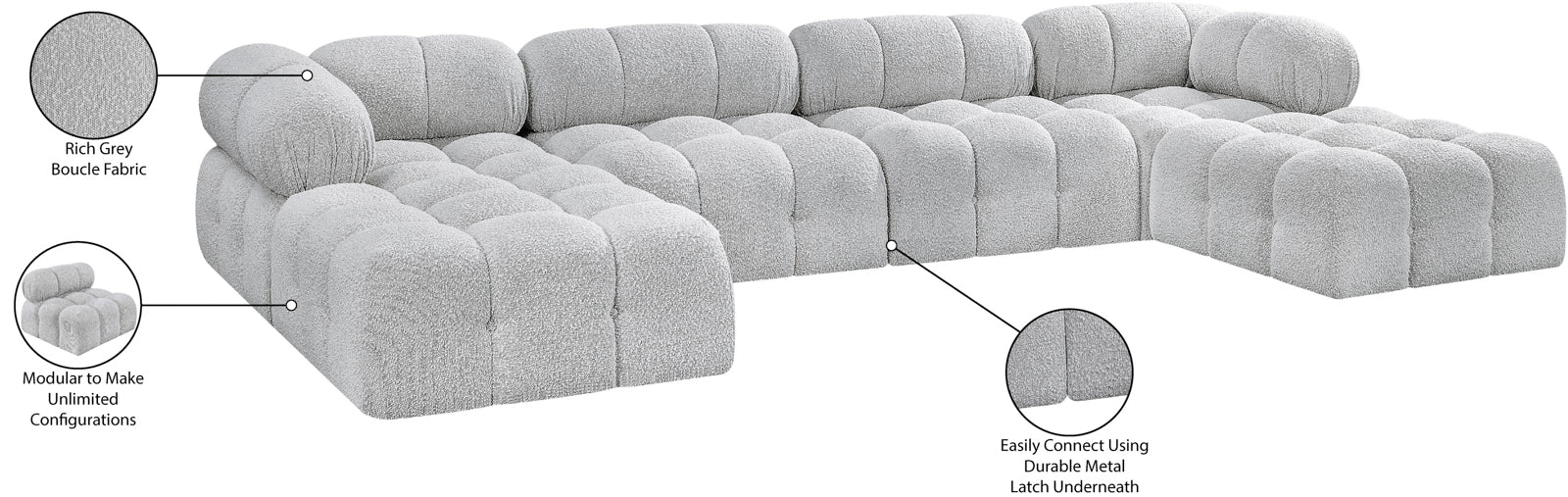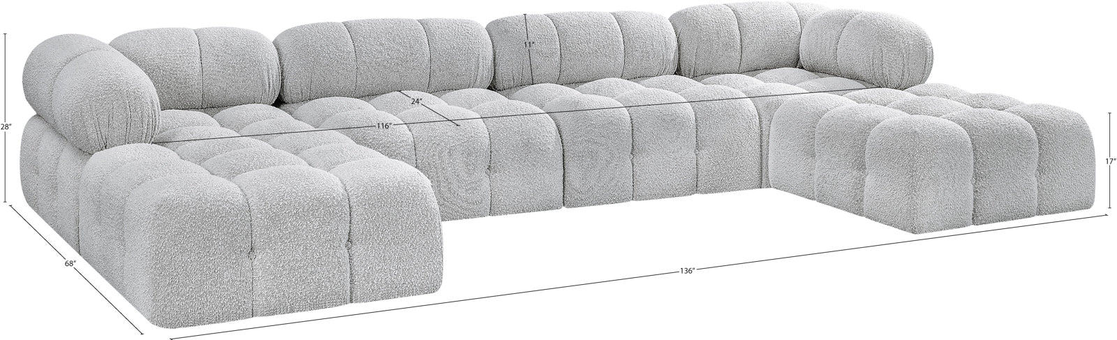 - Dimensions: 611Black-Sec6D Ames Black Boucle Fabric Modular Sectional - 136" W x 68" D x 28" H