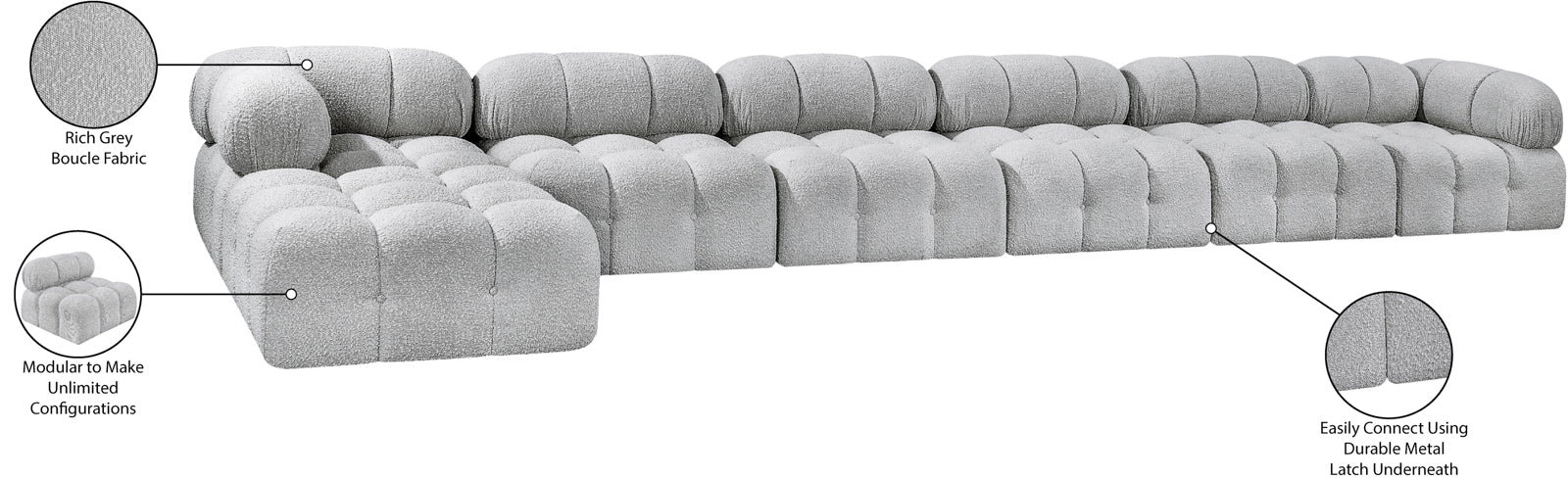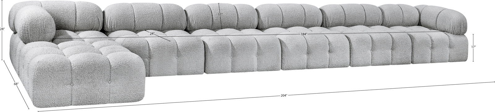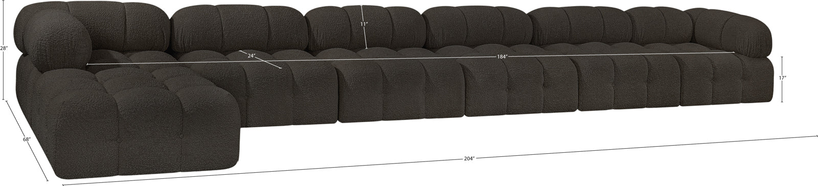 - Dimensions: 611Black-Sec7D Ames Black Boucle Fabric Modular Sectional - 204" W x 68" D x 28" H
