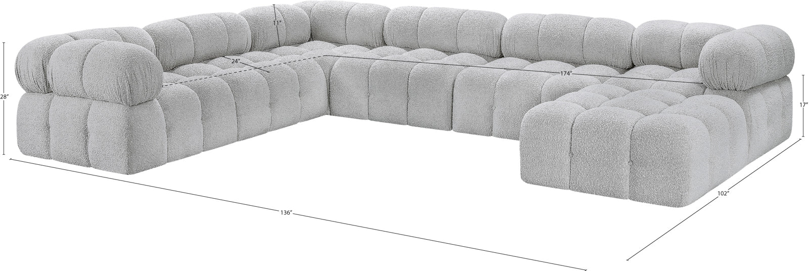- Dimensions: 611Black-Sec7E Ames Black Boucle Fabric Modular Sectional - 136" W x 102" D x 28" H