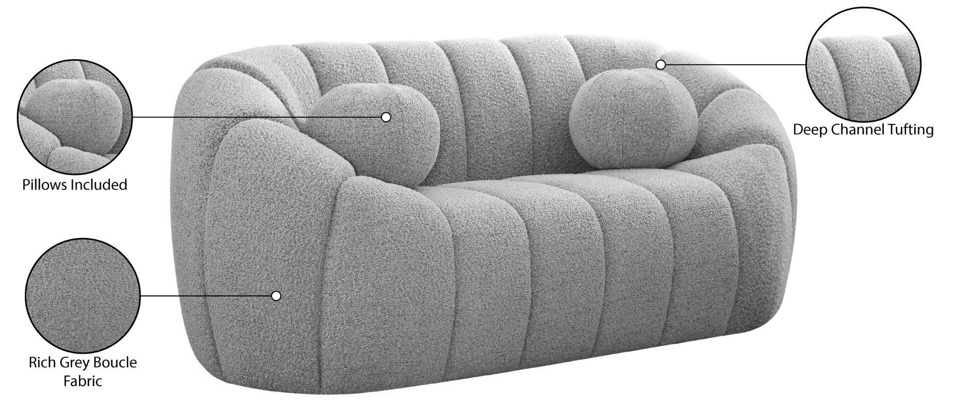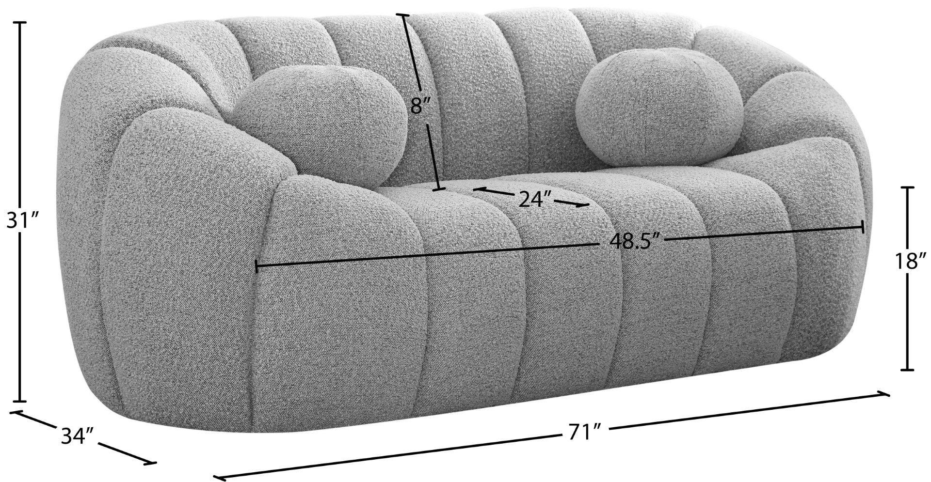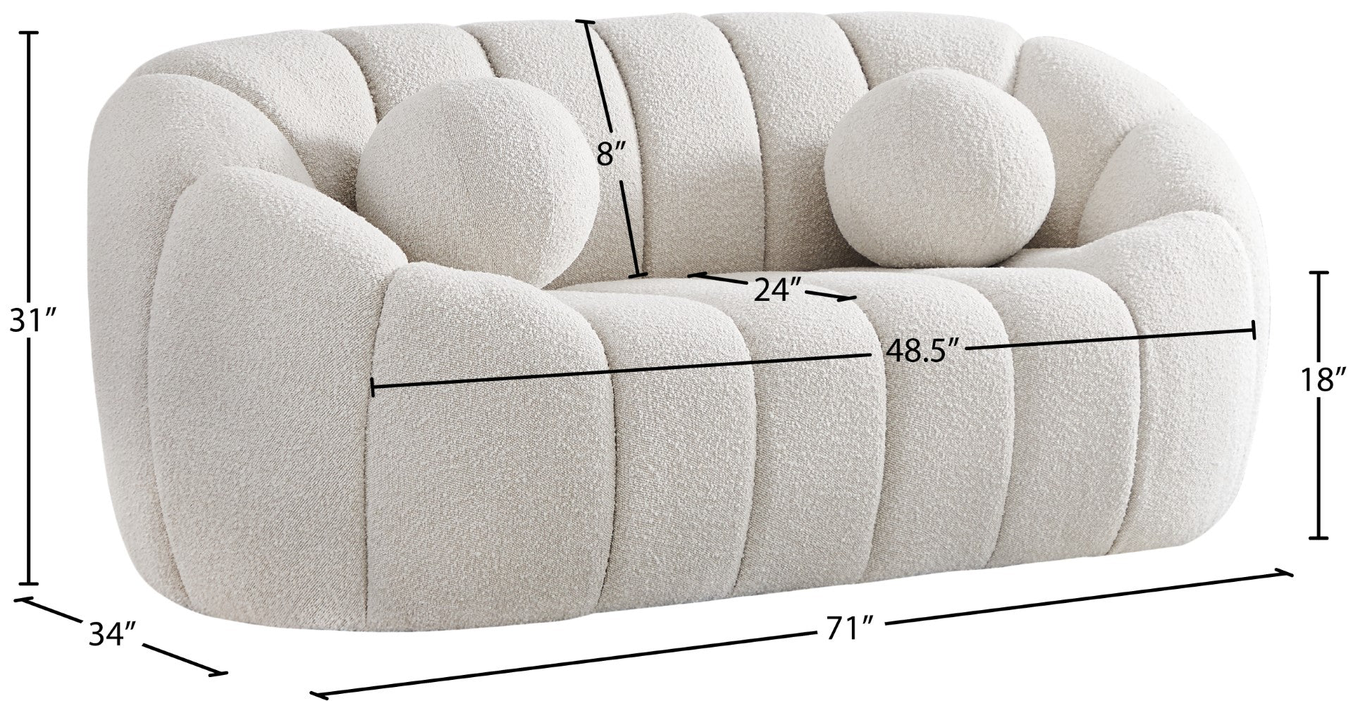 - Material: Boucle Fabric / Engineered Wood / Foam