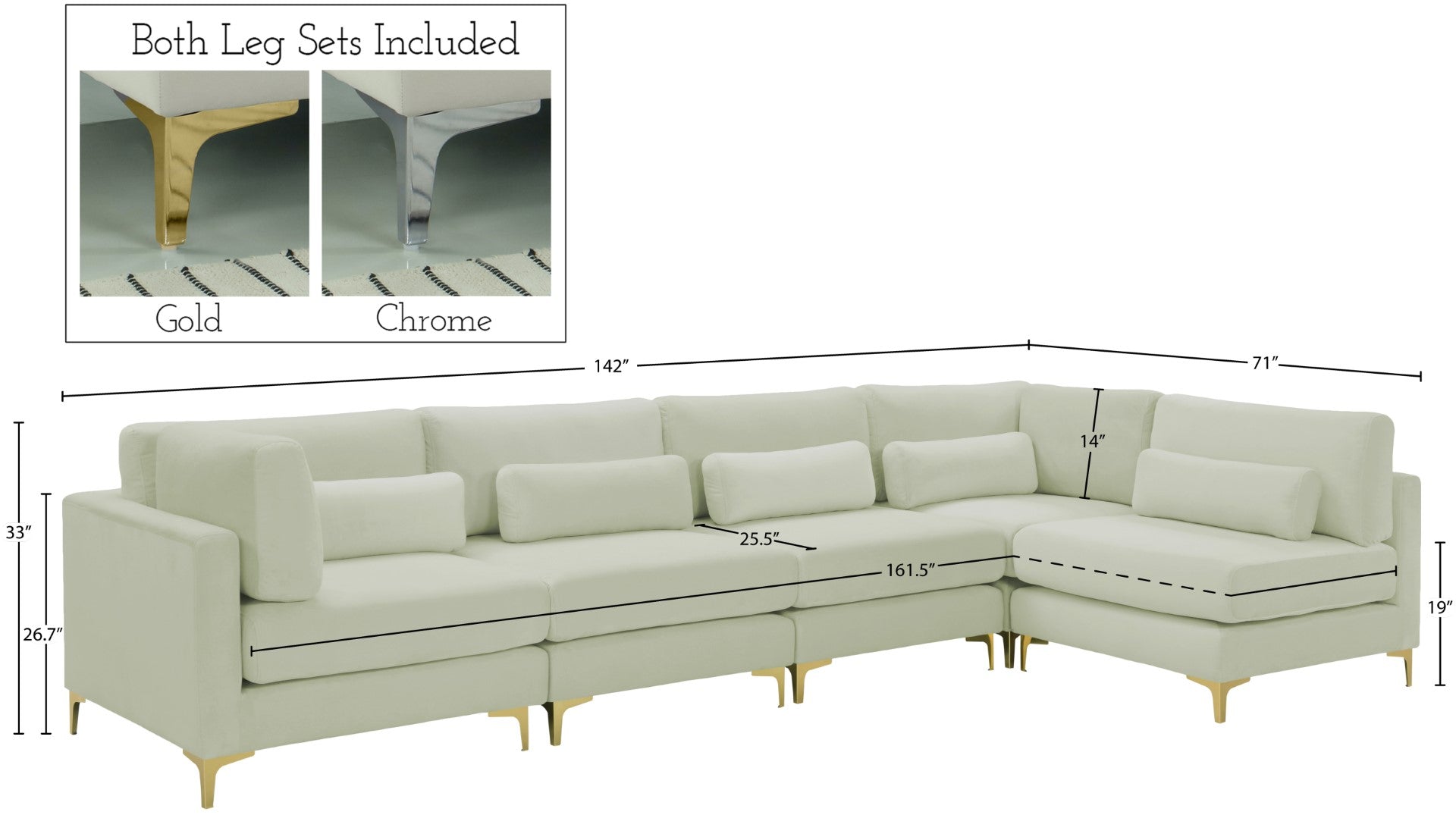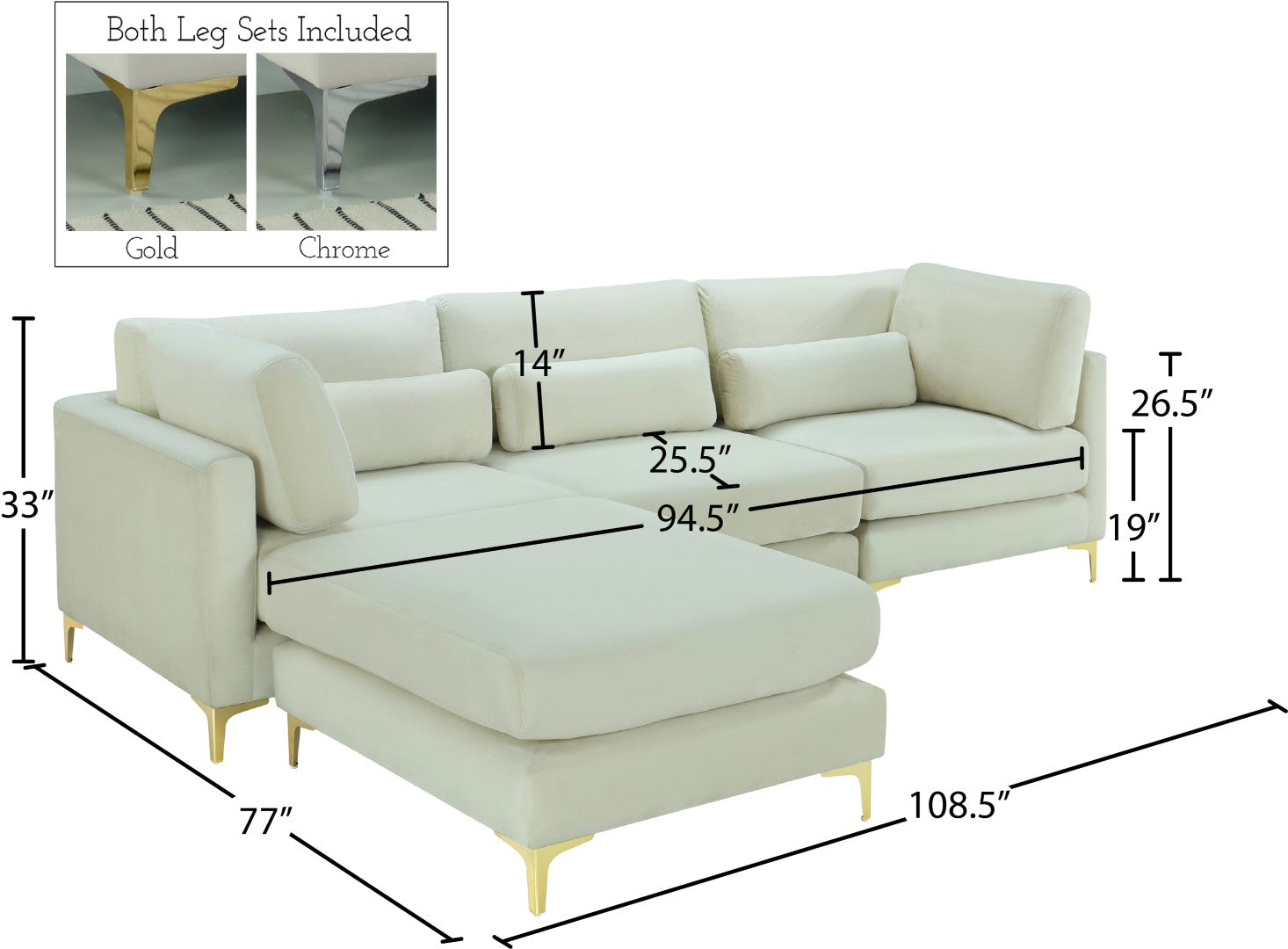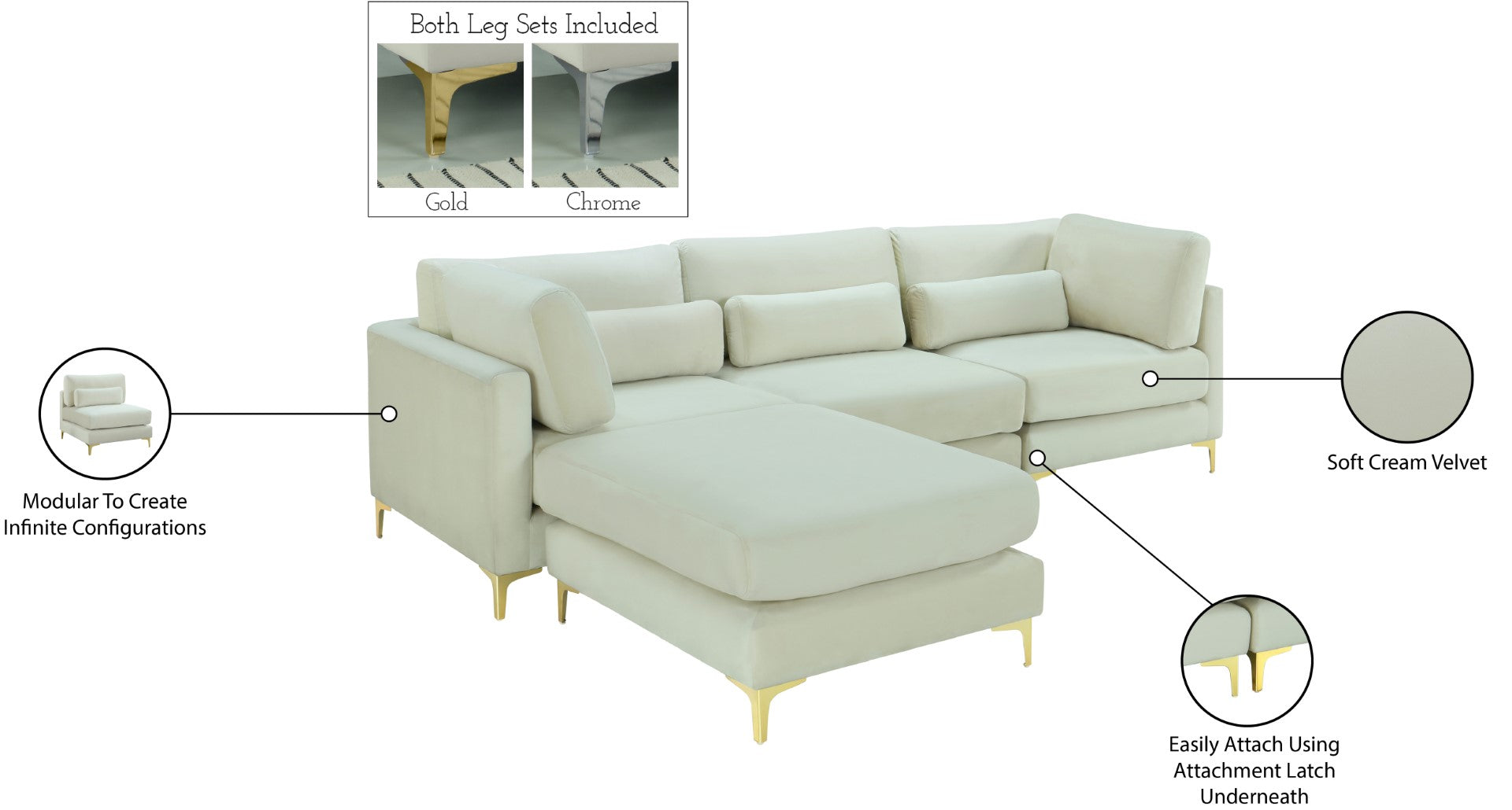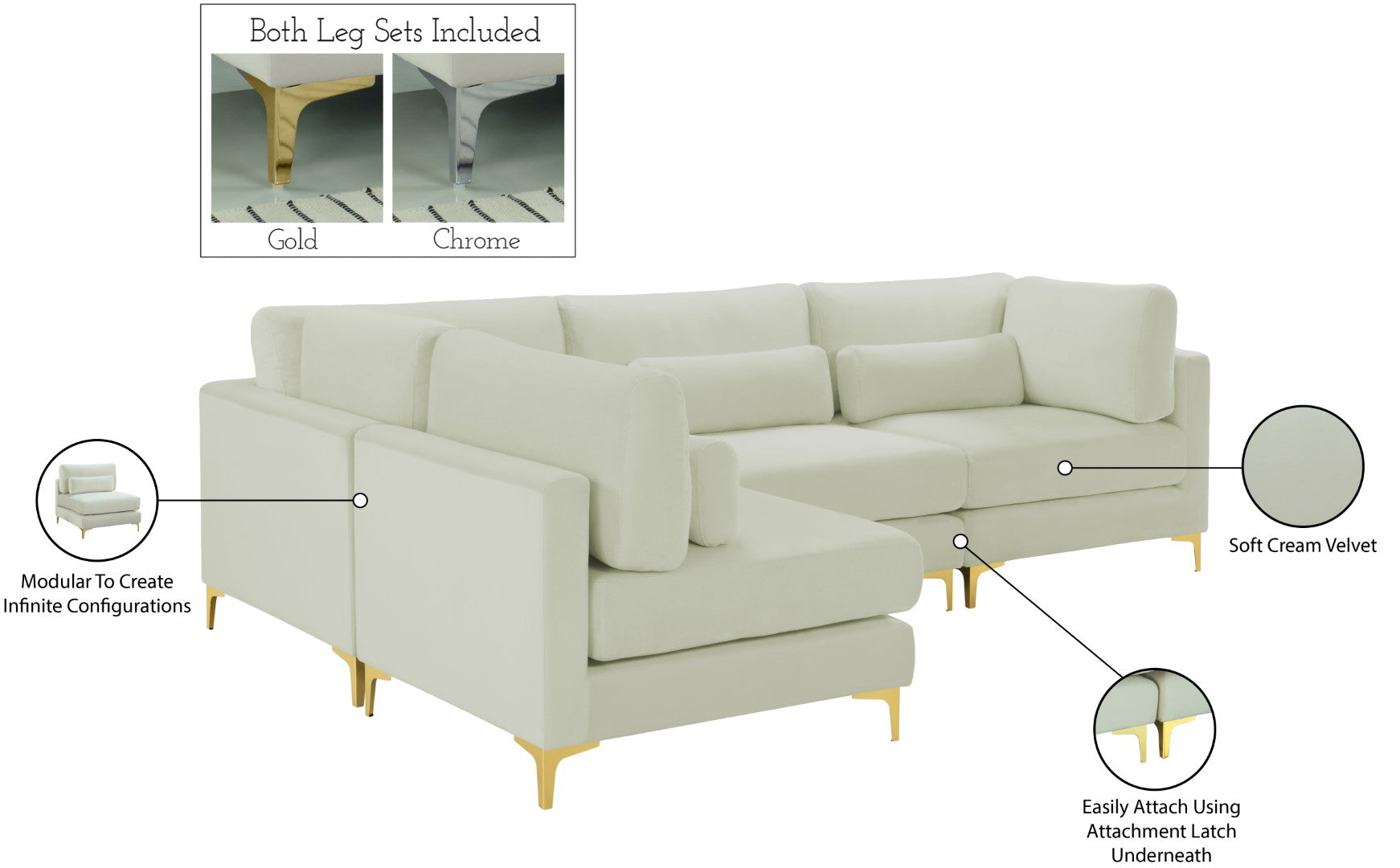 - Feature 2: Complete Sets of Gold & Chrome Legs Included to Suit your Décor