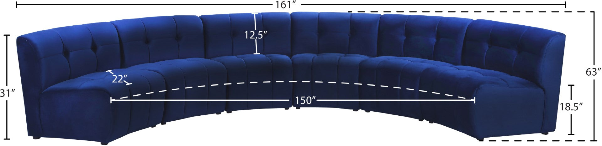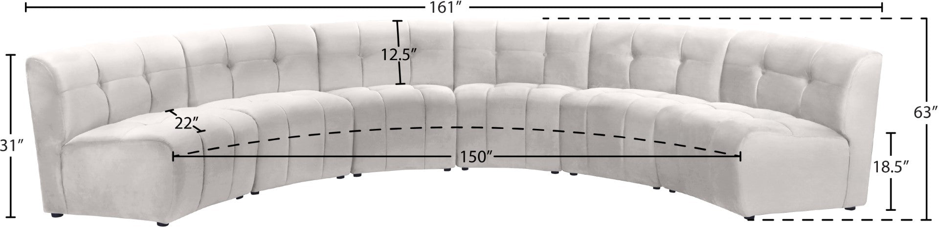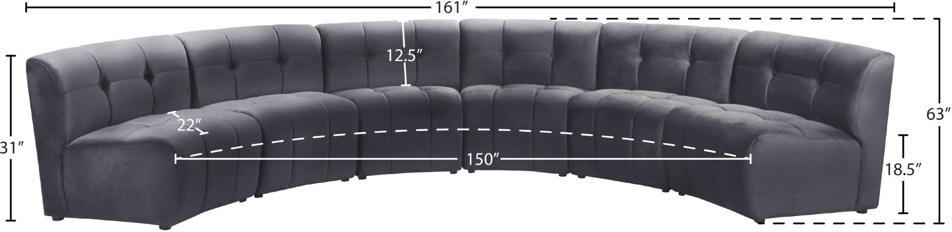 - Dimensions: 161" W x 63" D x 31" H