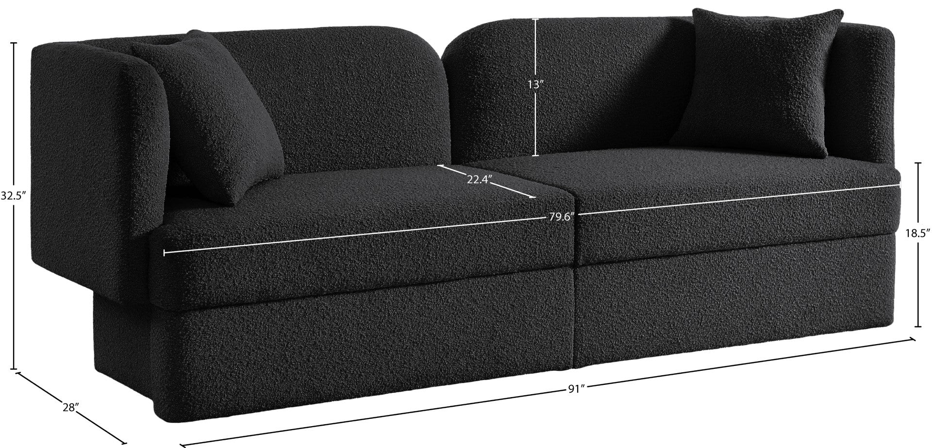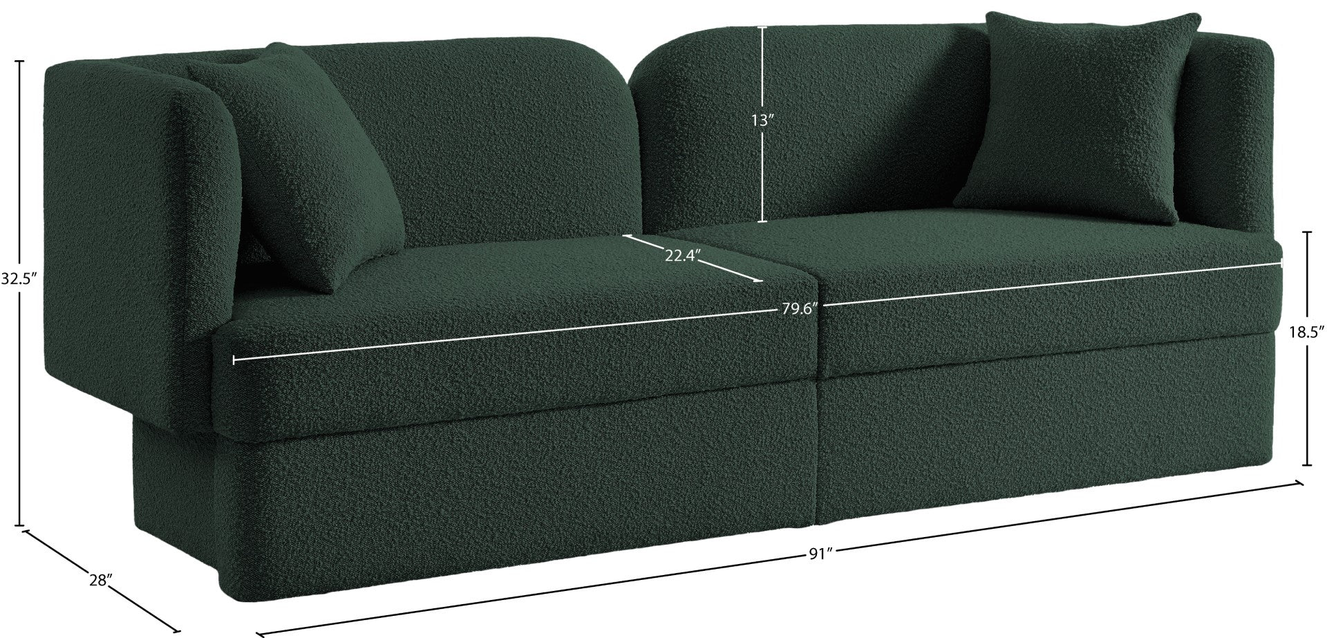 - Dimensions: 91" W x 28" D x 32.5" H