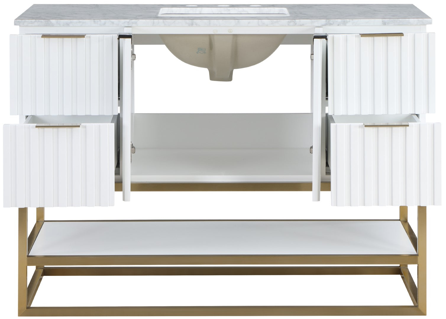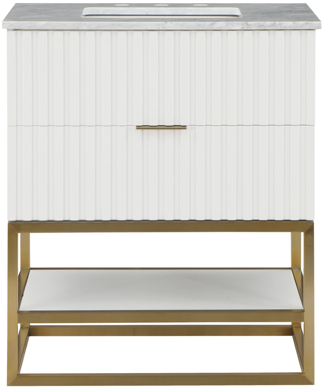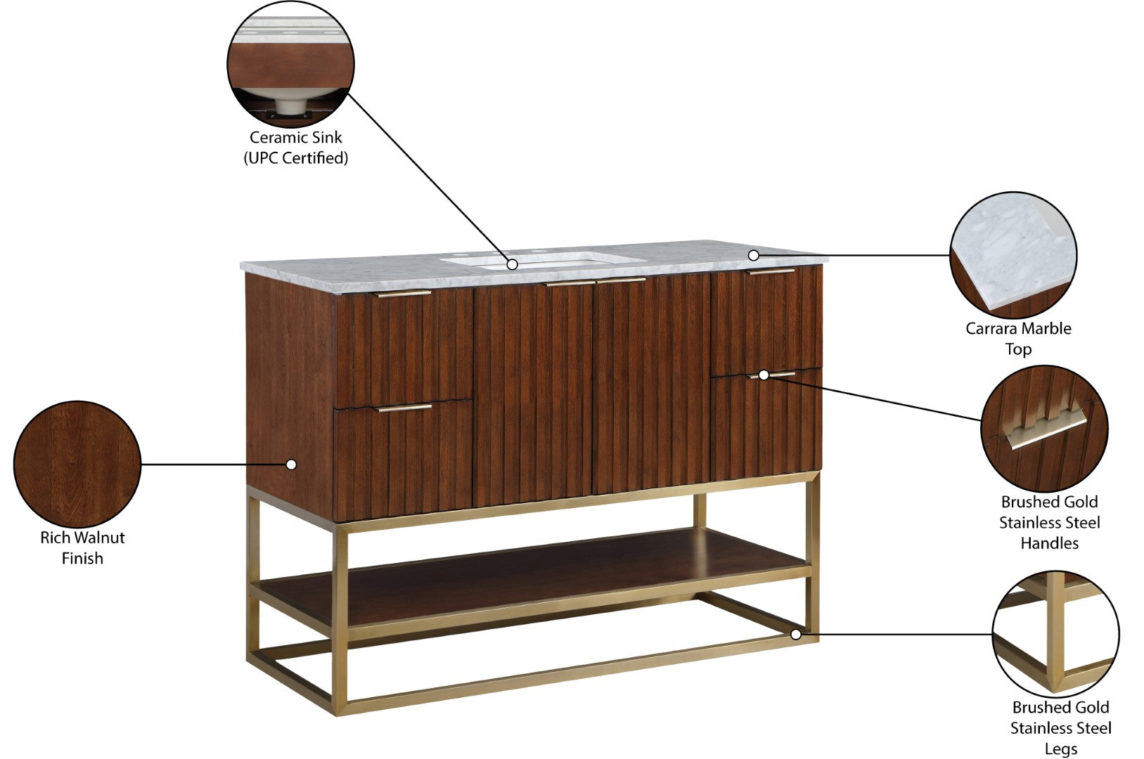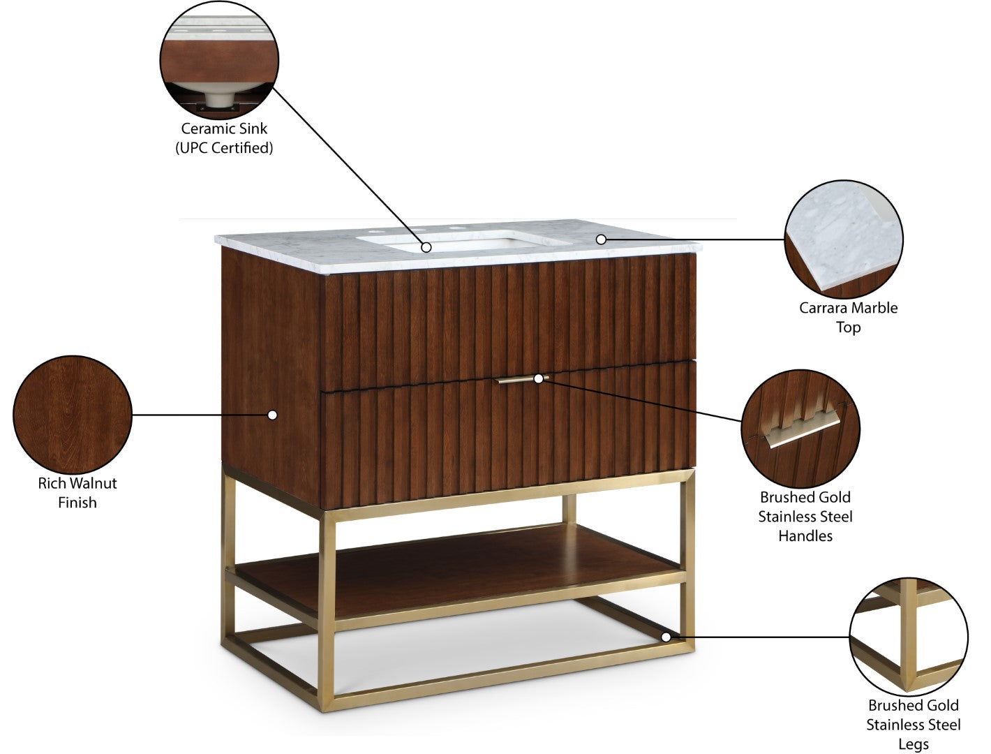 - Material: Carrara Marble / Birch Veneer / MDF / Stainless Steel / Ceramic
