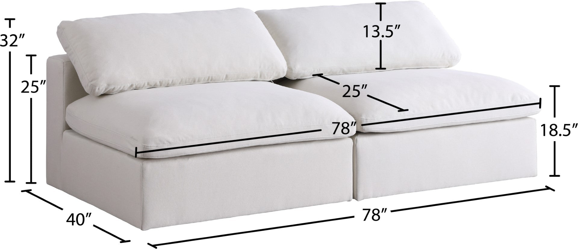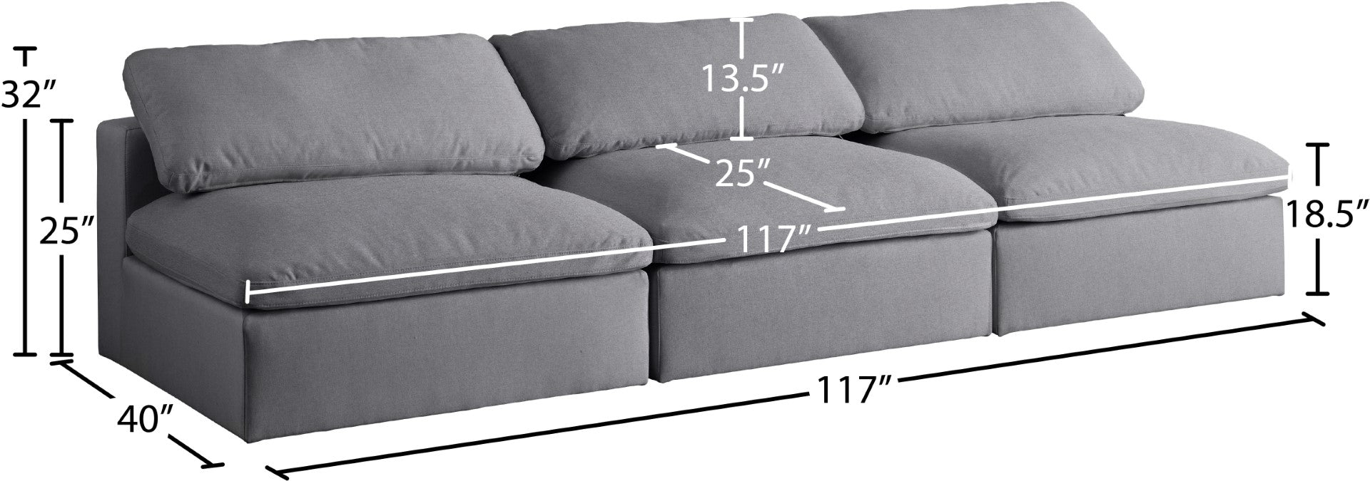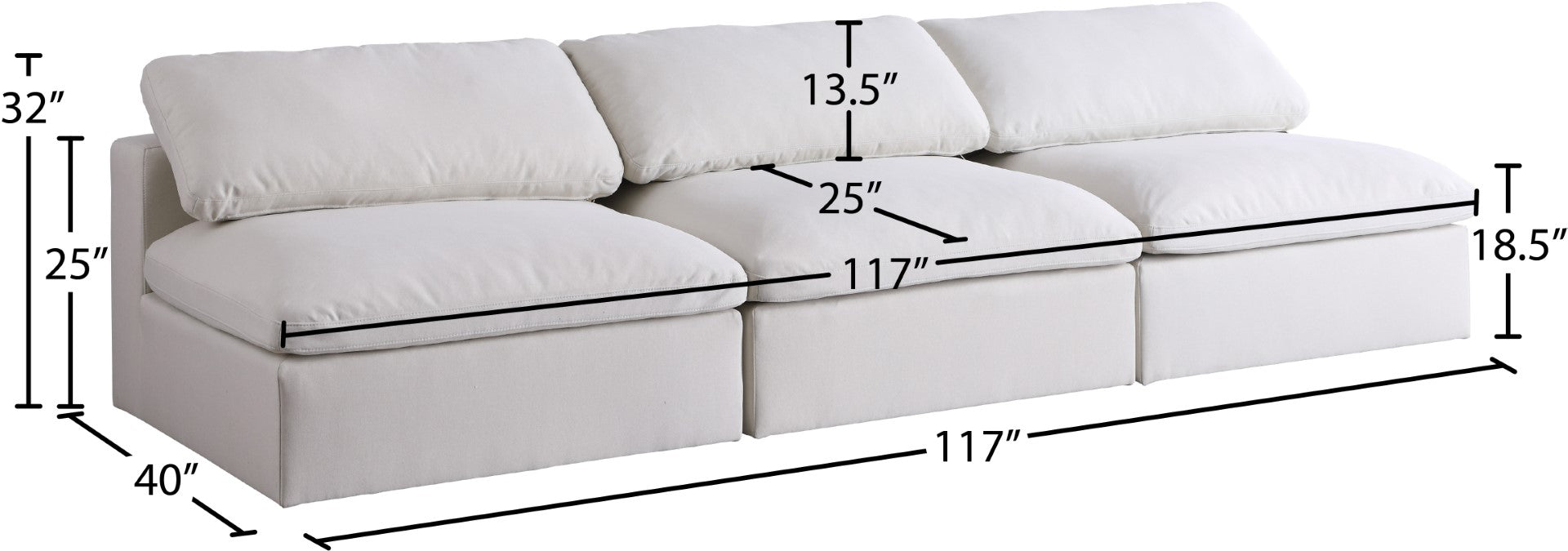 - Dimensions: 117" W x 40" D x 32" H