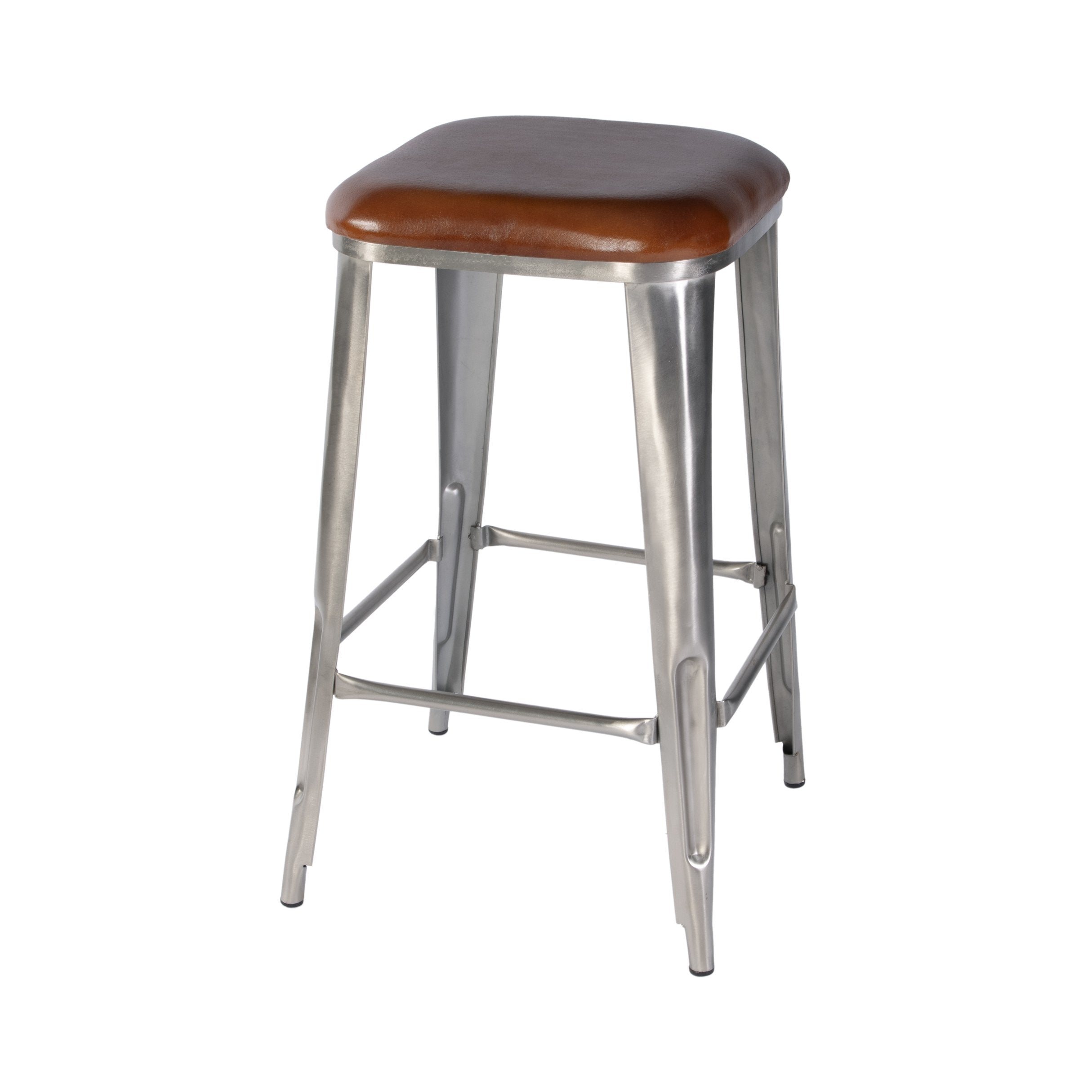 - The iron 4-leg base offers excellent stability on any surface and resists warping under heavy use. Its sleek design adds industrial flair, making this stool a durable and stylish seating choice for both residential and commercial spaces.