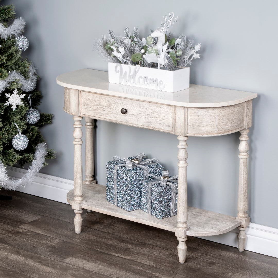 - Feature 2: Ivory marble top measures:40"W, 14"D, .75"H