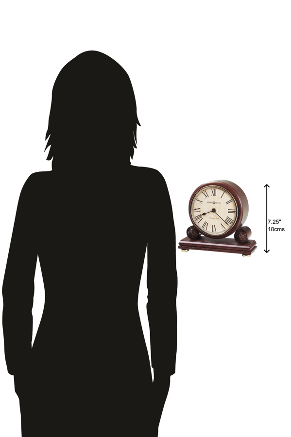 - MANTEL CLOCK: The Redford Mantel Clock features a Windsor Cherry finish on select hardwoods and veneers to complement your home decor. Place it above your fireplace in the living room for a classic decorative piece with rosette supports on the base and polished brass-finished bun feet. DURABLE: This clock has a sturdy frame to relieve stress in a busy household. It includes black traditional Roman numerals (IIII instead of IV), black hands, a polished brass-finished bezel, and convex glass to stand out over an aged dial. CHIMES: Easily tell time with a single-chime movement that plays the Westminster chime to strike each hour. The convenient automatic nighttime chime shut off and volume control allows this clock to be set in any room. MOVEMENT: It is powered by quartz, single-chime movement and requires three AA sized batteries. HOWARD MILLER: Founded in 1926 and still family-owned in its third generation, Howard Miller is the world&rsquo