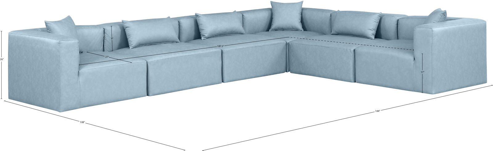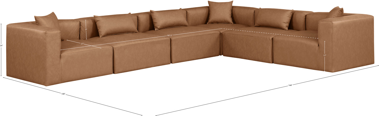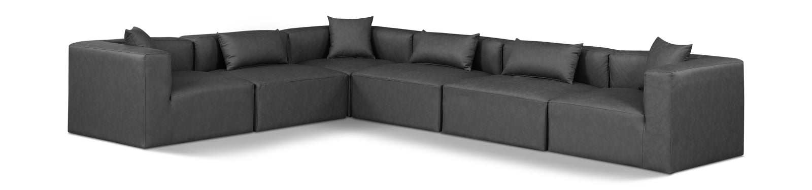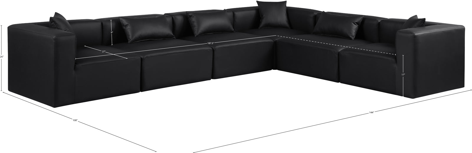 - Dimensions: 668Black-Sec6A Cube Black Vegan Leather Modular Sectional - 144" W x 108" D x 26" H