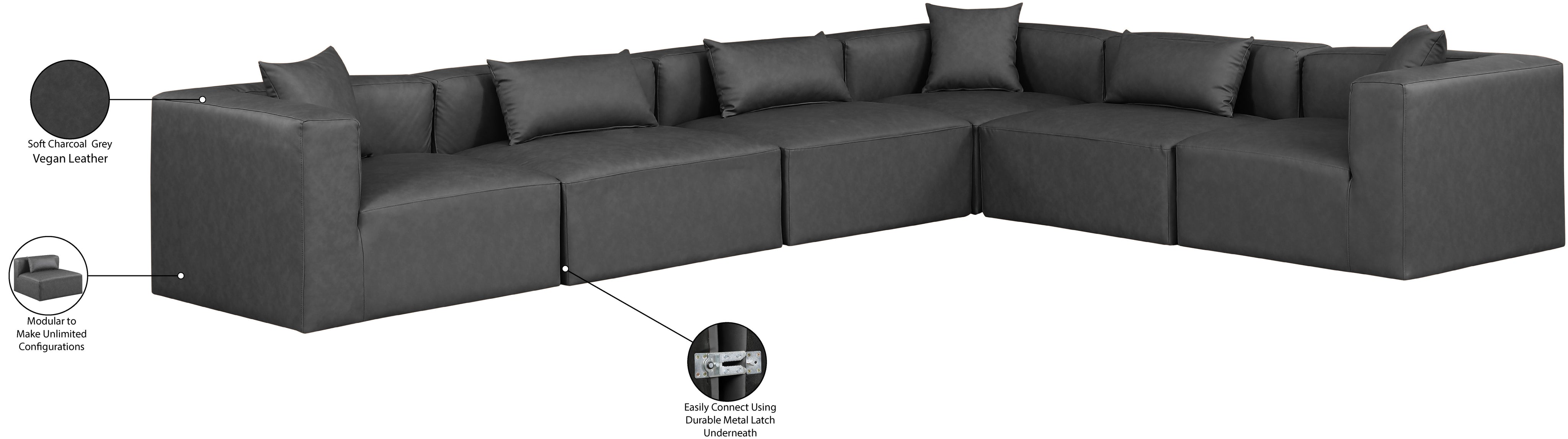 - Color: 668Black-Sec6A Cube Black Vegan Leather Modular Sectional - Black Vegan Leather