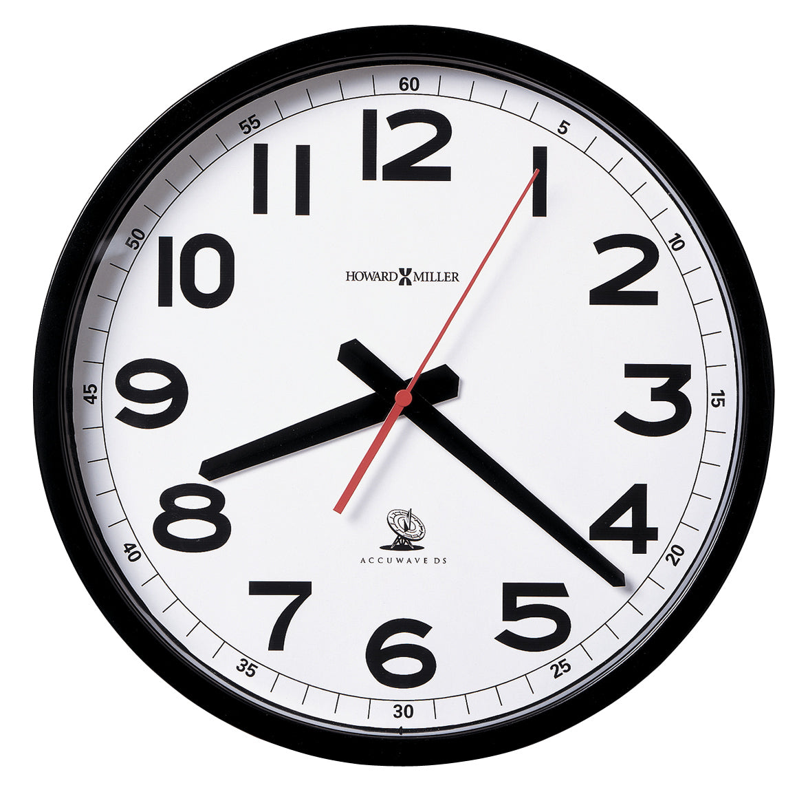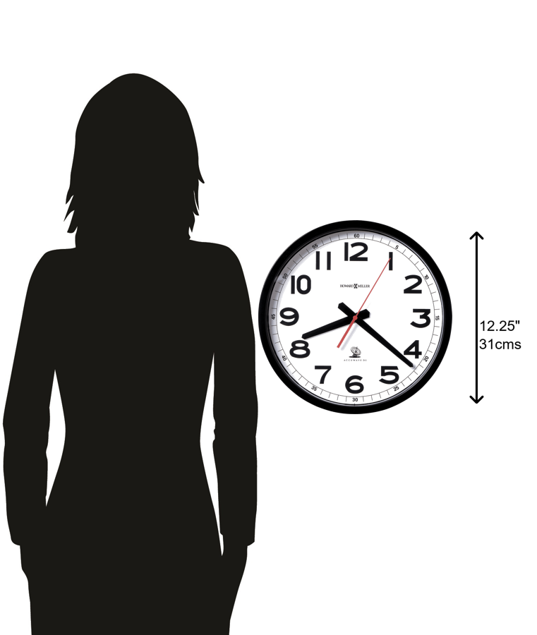 - WALL CLOCK: This Accuwave II Wall Clock automatically sets itself for your Continental US Time Zone. This convenient clock will compliment your home decor. The movement makes a soft ticking noise without the use of chimes for a quieter environment. DURABLE: This clock has a sturdy frame to relieve stress in a busy household. Display it in your kitchen, office, bathroom, bedroom, living room, and more. Easily tell time with black Arabic numerals, black case, and glass crystal to stand out over a white dial. DAYLIGHT SAVINGS TIME: With special radio-controlled movement, this clock automatically resets and adjusts for daylight savings time. It receives a radio signal from the cesium atomic clock, the most accurate clock in the world. MOVEMENT: It is powered by radio movement and requires one AA sized battery. Signal interference may occur near electrical items or certain structures. HOWARD MILLER: Founded in 1926 and still family-owned in its third generation, Howard Miller is the world&rsquo