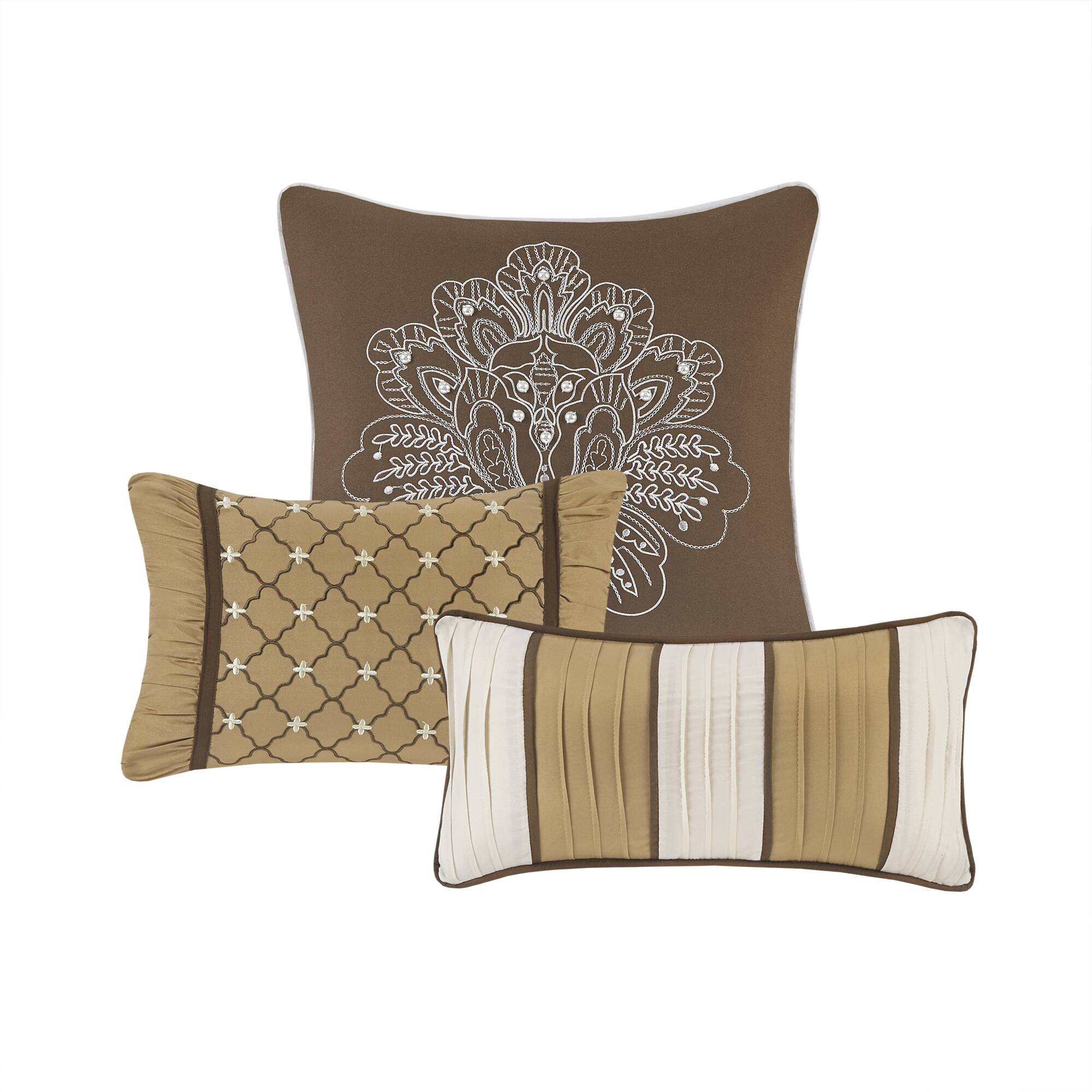 - Includes: One quilt, two shams, and three decorative throw pillows with coordinated pleating and embroidery details to tie the whole look together.