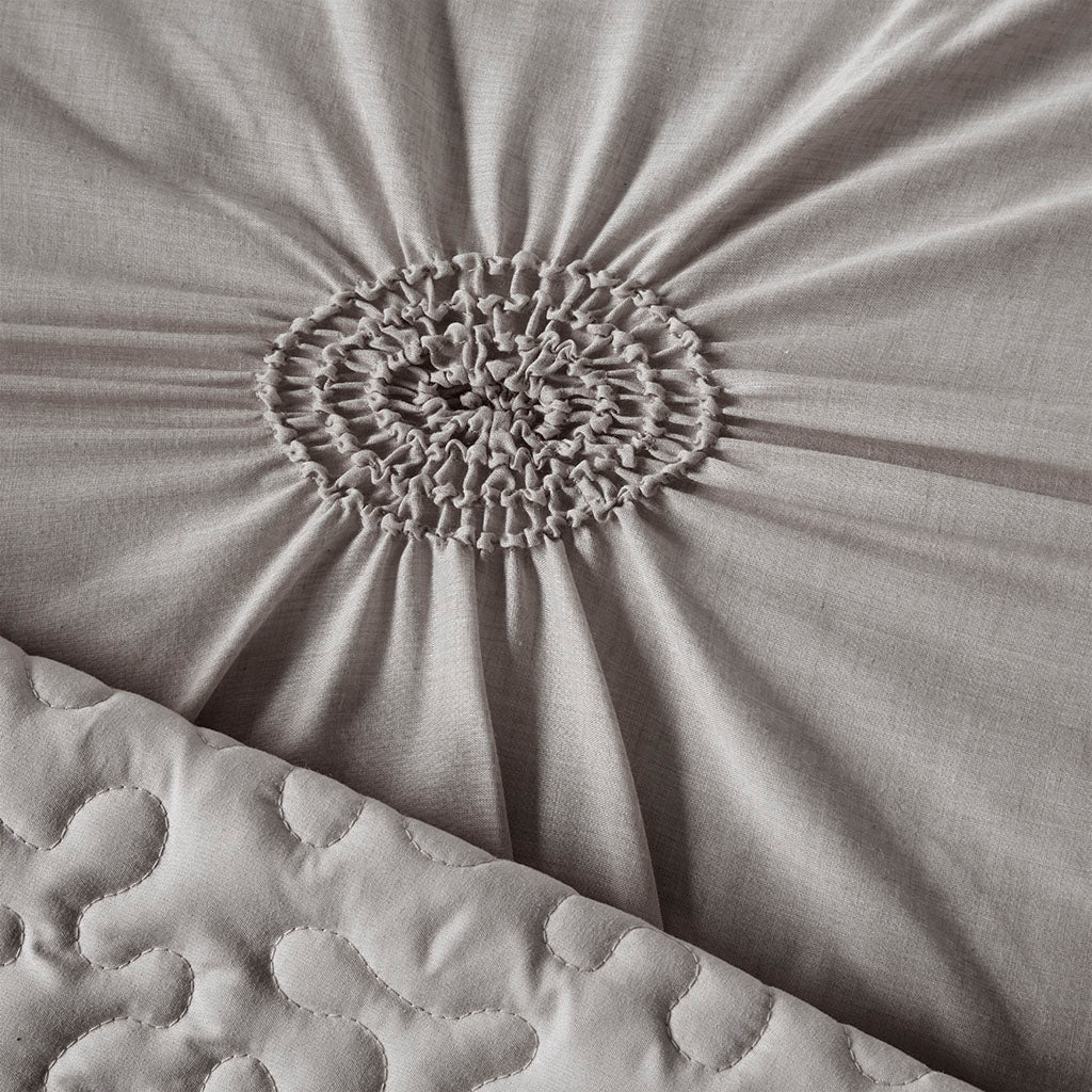 - Design Details: Puckered diamond tufting with ruche detailing on the top surface; quilted pattern on the reverse for two looks in one