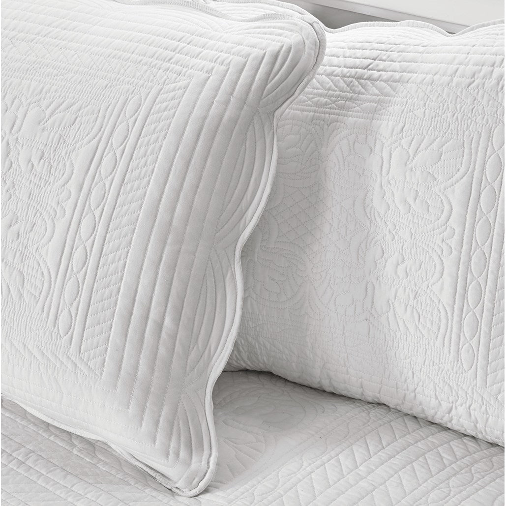 Give your guest room a timeless cottage makeover with this six-piece daybed cover set. Softly scalloped edges, classic stitch detailing, and elegant embroidery create a refined yet cozy look, while practical finishes help keep the bedding fresh and long-lasting. Designed to fit a standard Twin mattress, this coordinated set delivers instant style and complete coverage for a polished bed presentation.