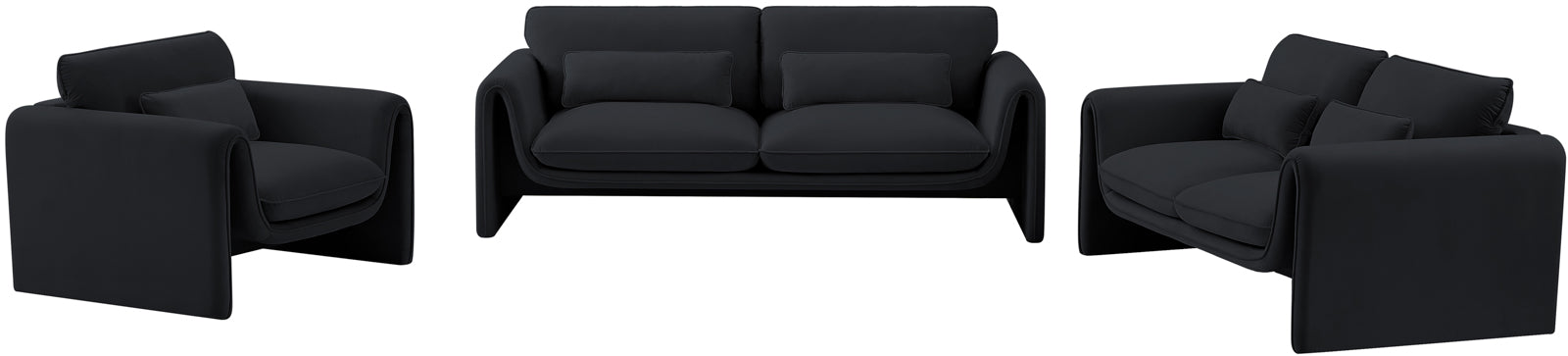 - Dimensions: 199Black-L Sloan Black Velvet Fabric Loveseat - 64" W x 38" D x 31" H