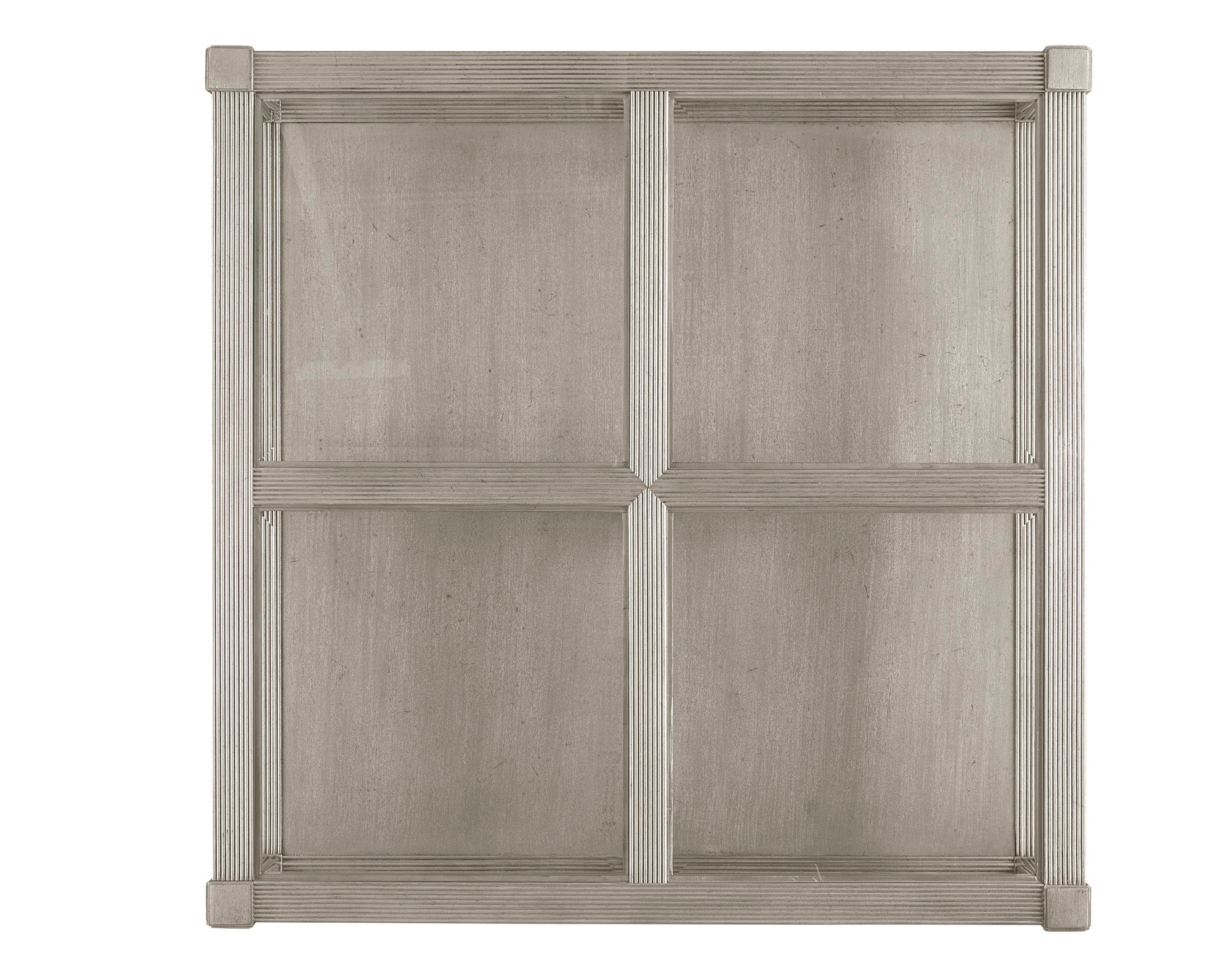 - Glass top features four (4) inset glass pieces with rounded, beveled edges