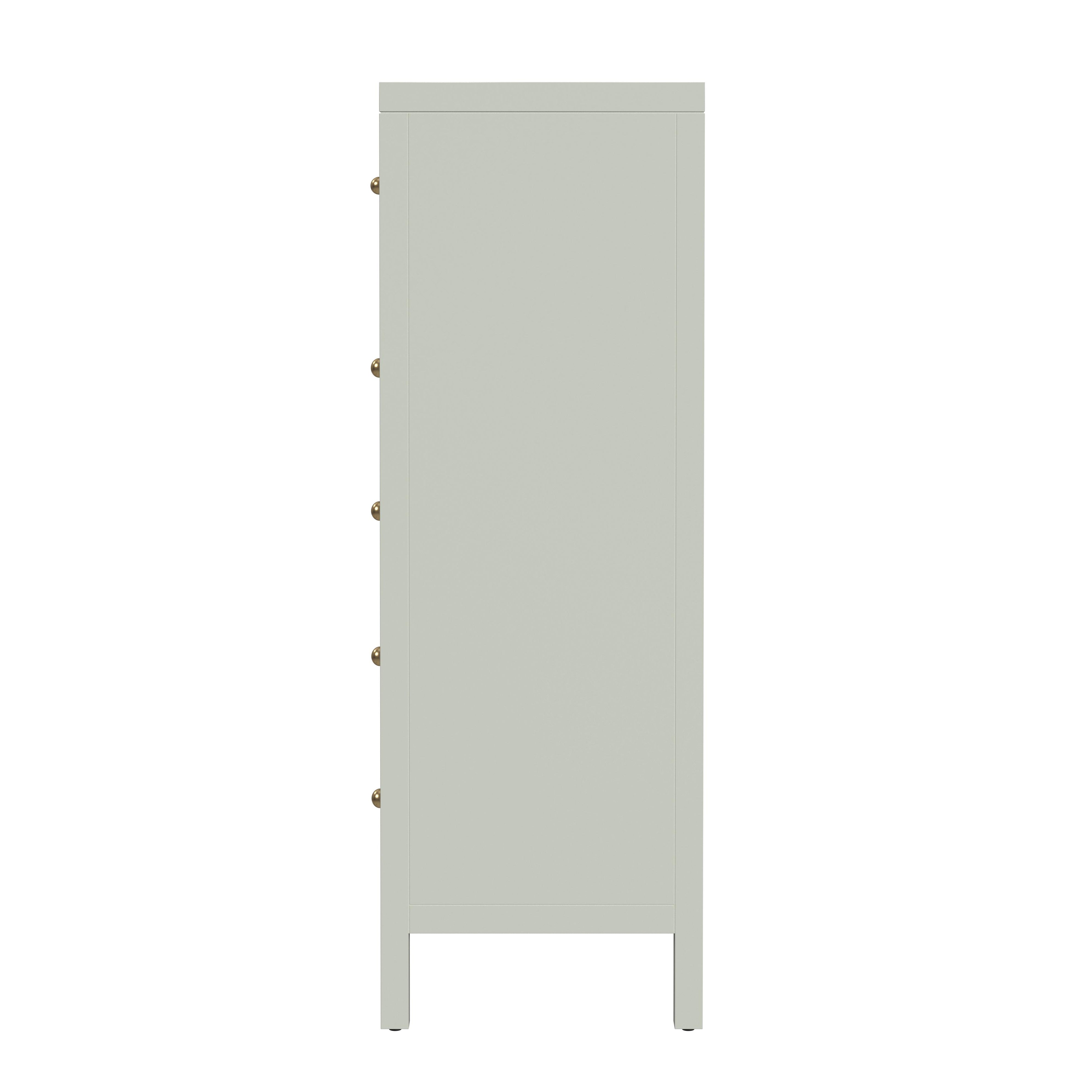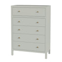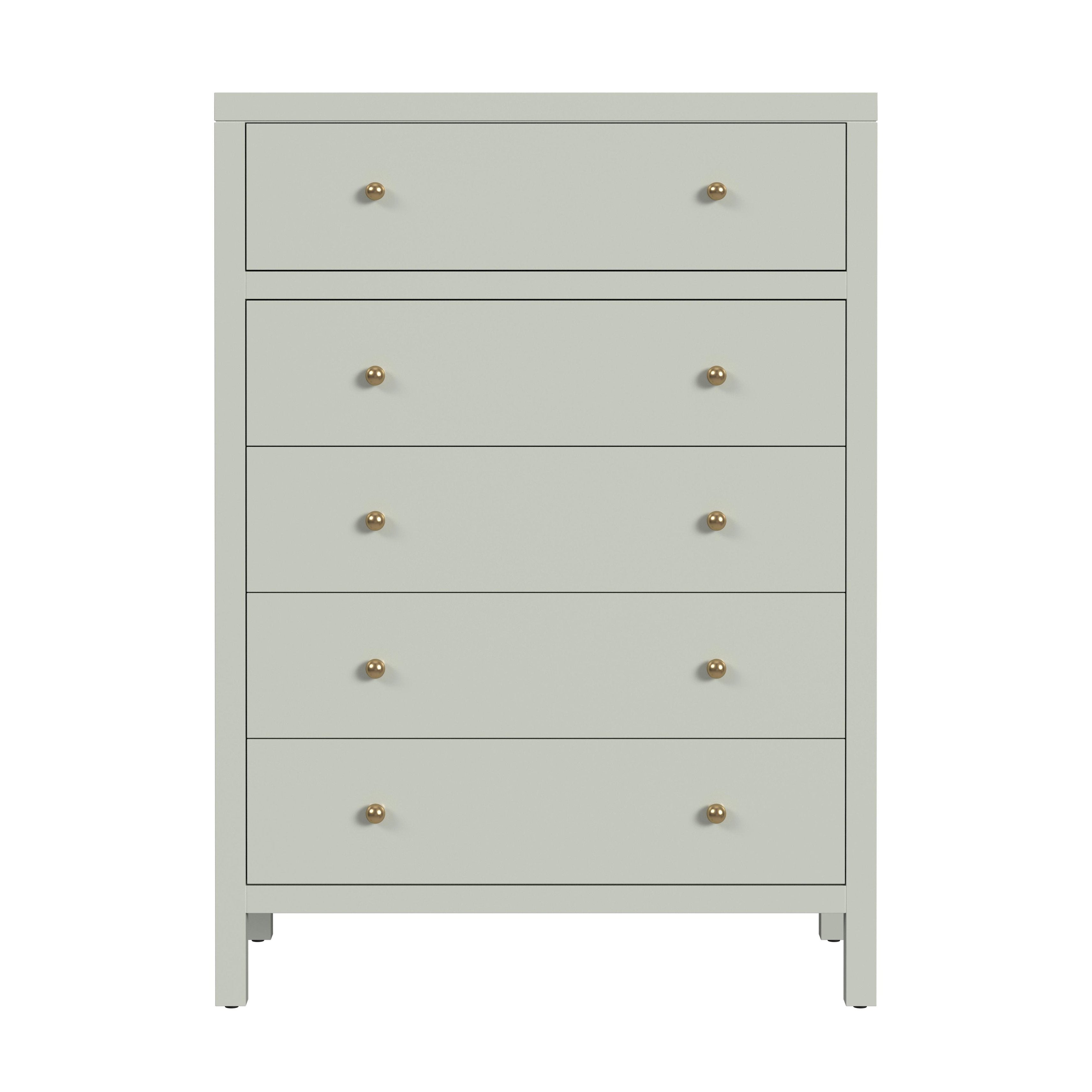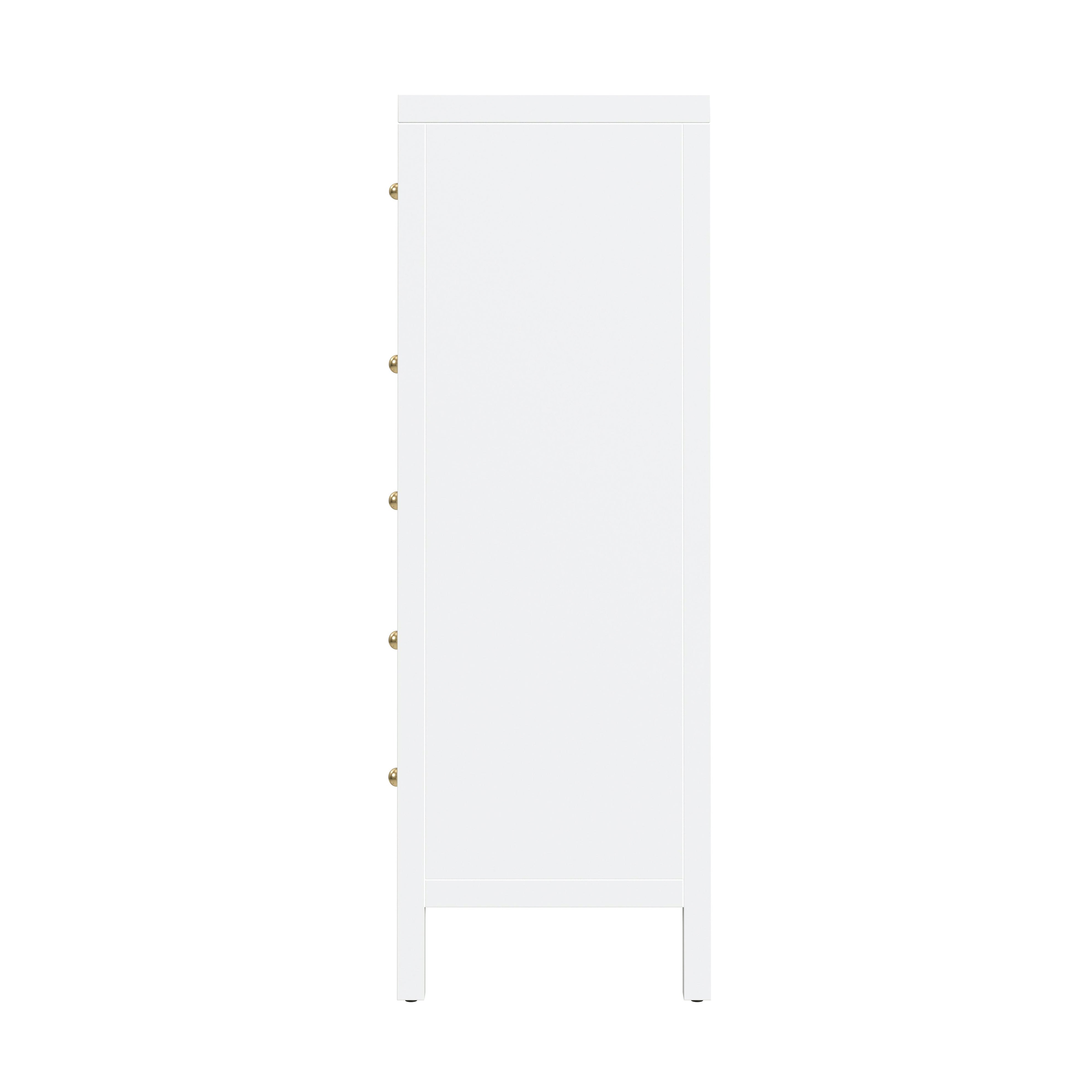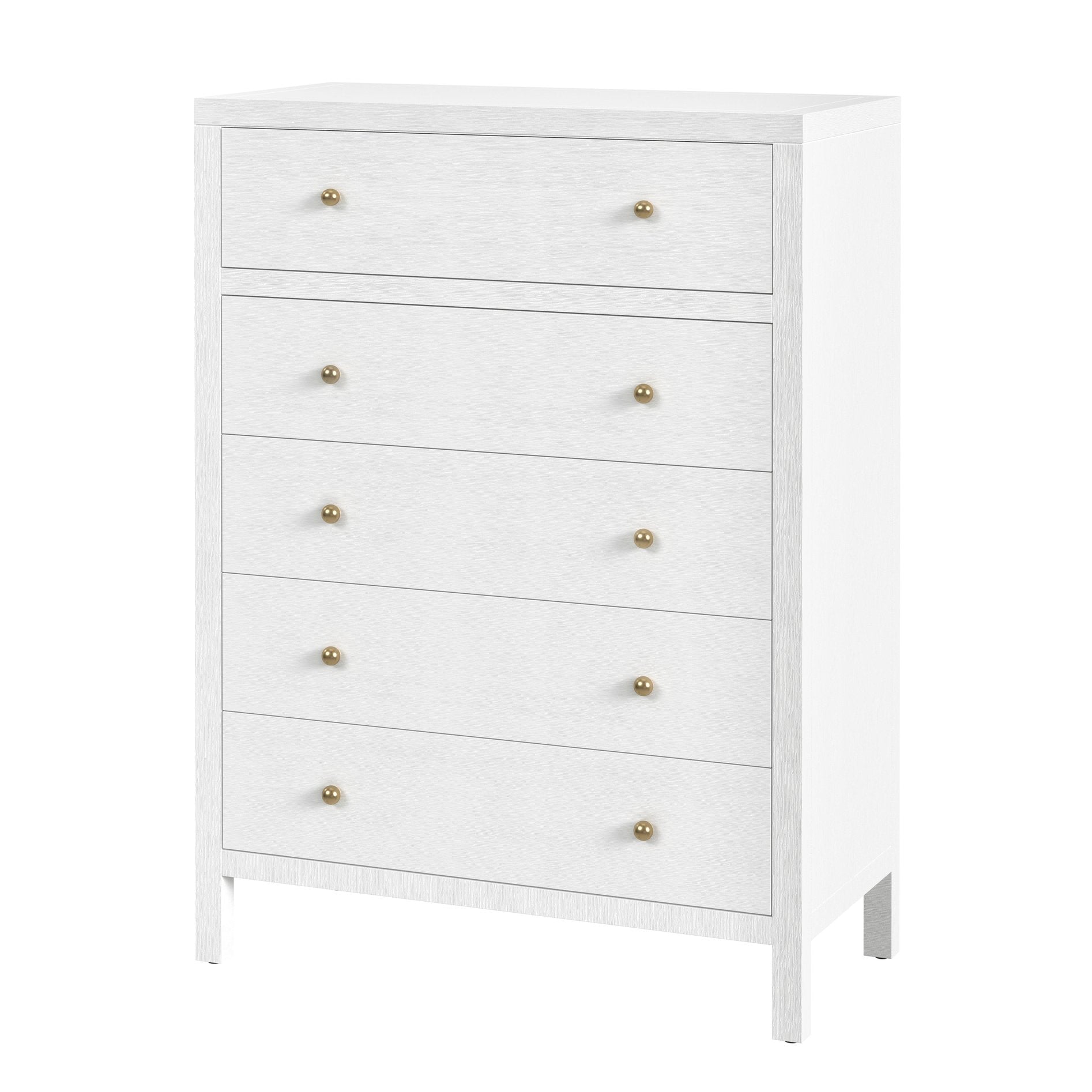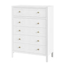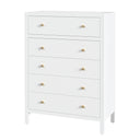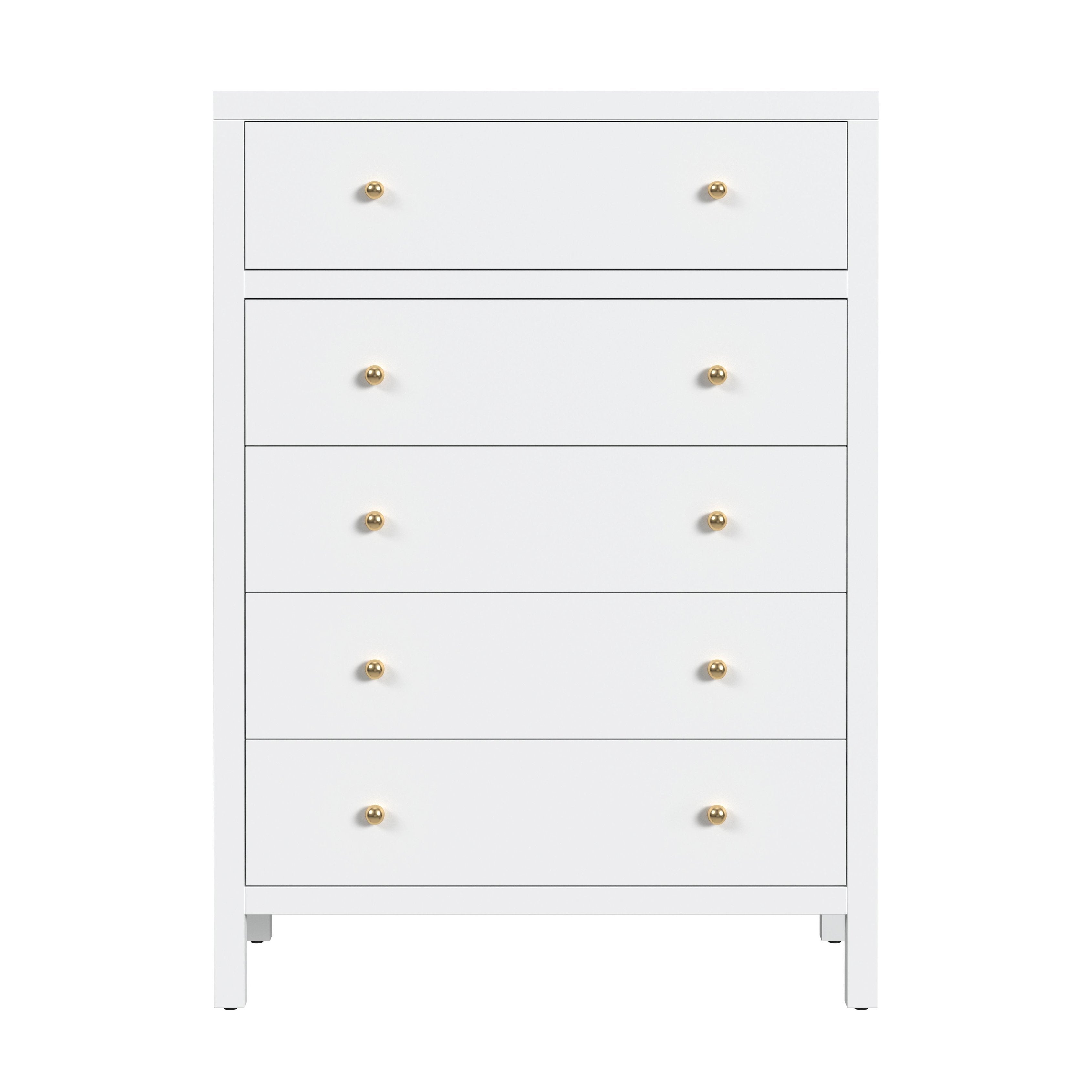 - Five drawers glide smoothly on metal tracks, reinforced for stability, feature soft-close mechanisms for quiet operation
