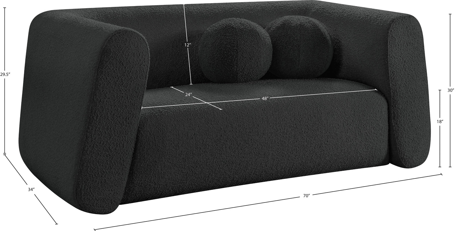 - Dimensions: 113Black-L Abbington Black Boucle Fabric Loveseat - 70" W x 34" D x 29.5" H