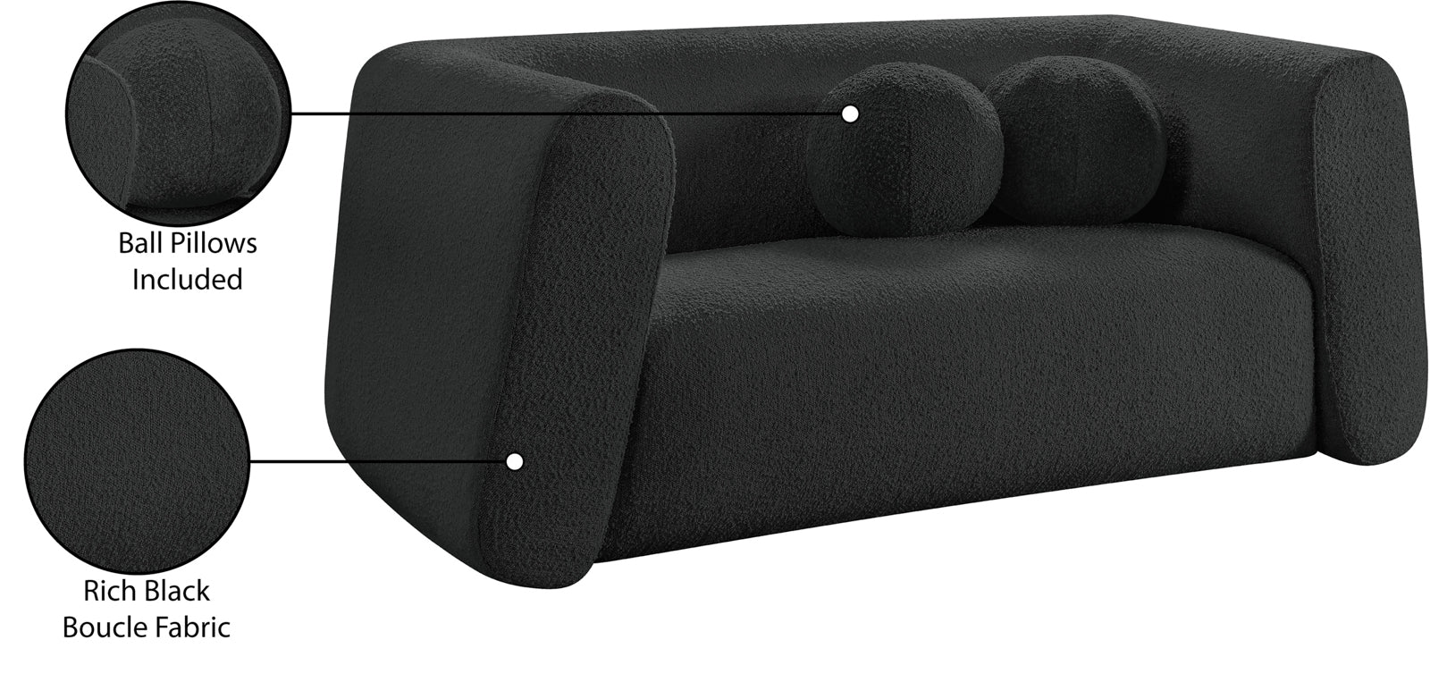 - Color: 113Black-L Abbington Black Boucle Fabric Loveseat - Black Boucle Fabric