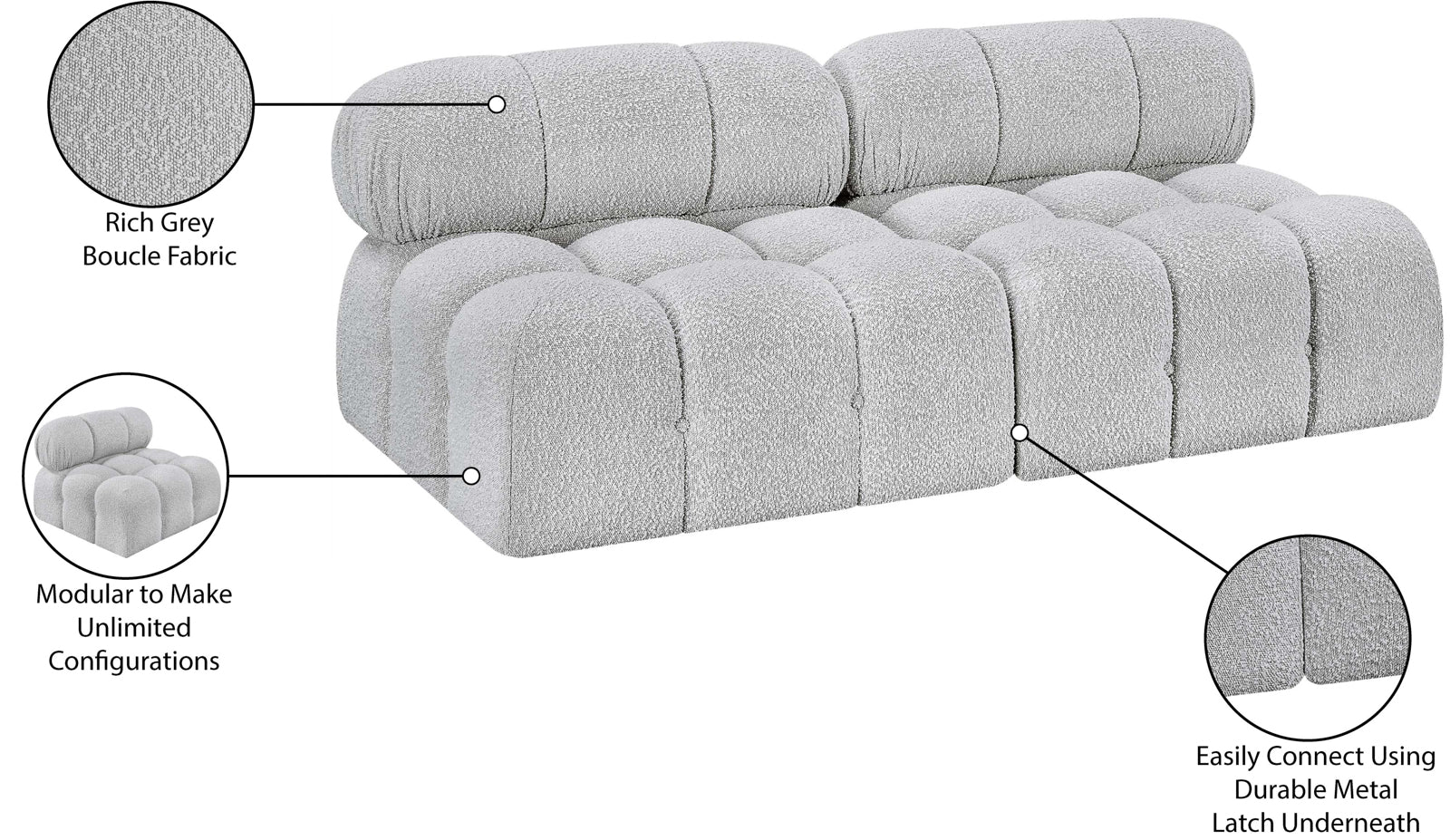 - Dimensions: 611Black-S68B Ames Black Boucle Fabric Modular Sofa - 68" W x 34" D x 28" H