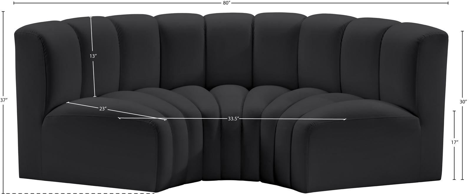 - Dimensions: 101Black-S3C Arc Black Vegan Leather Modular Sofa - 80" W x 37" D x 30" H