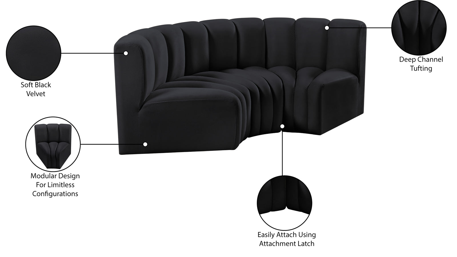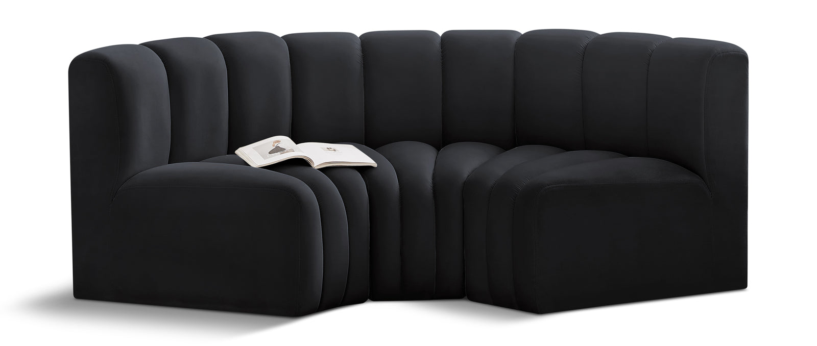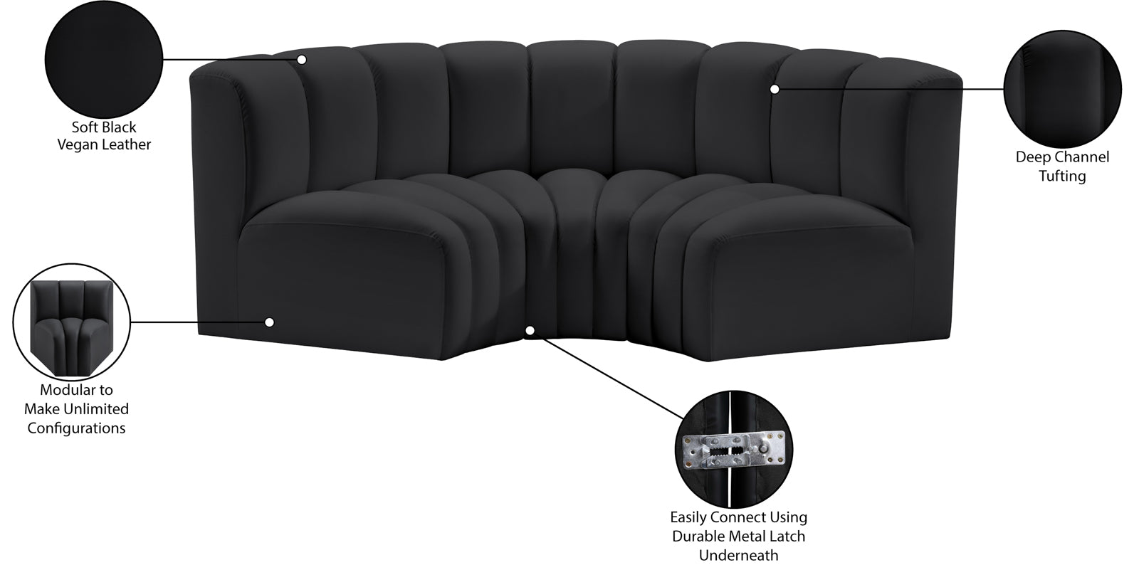 - Color: 101Black-S3C Arc Black Vegan Leather Modular Sofa - Black Vegan Leather
