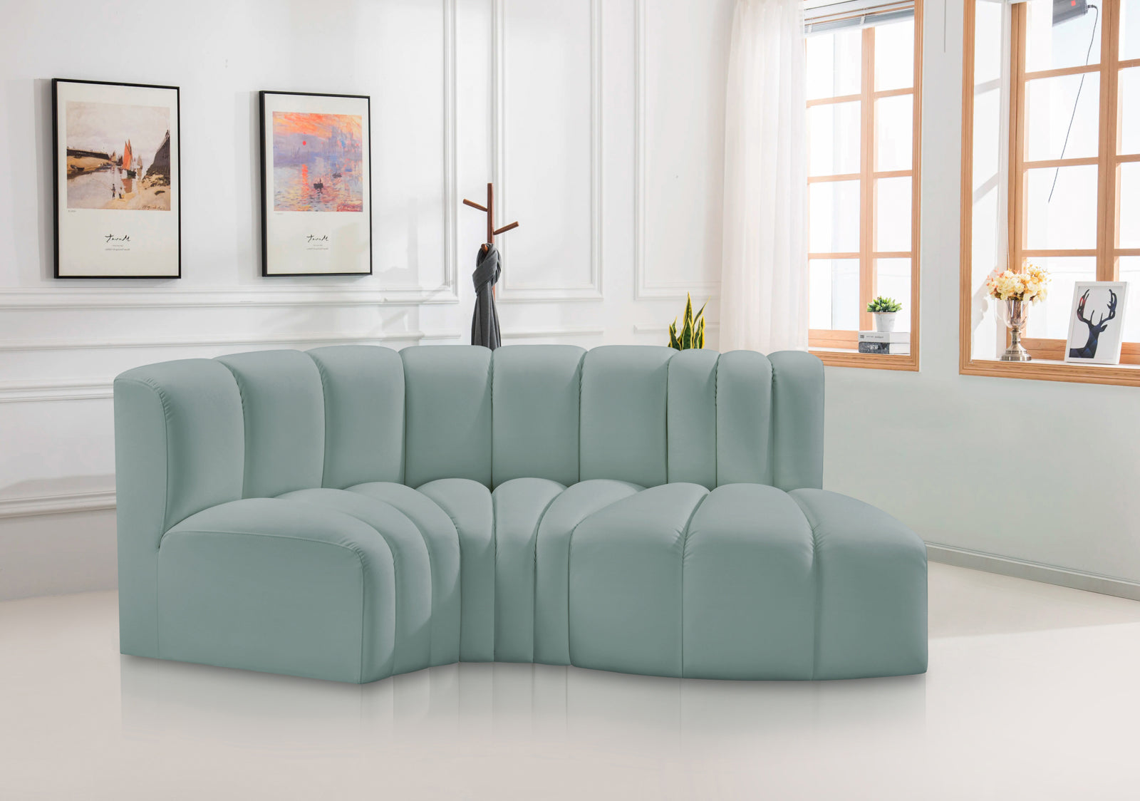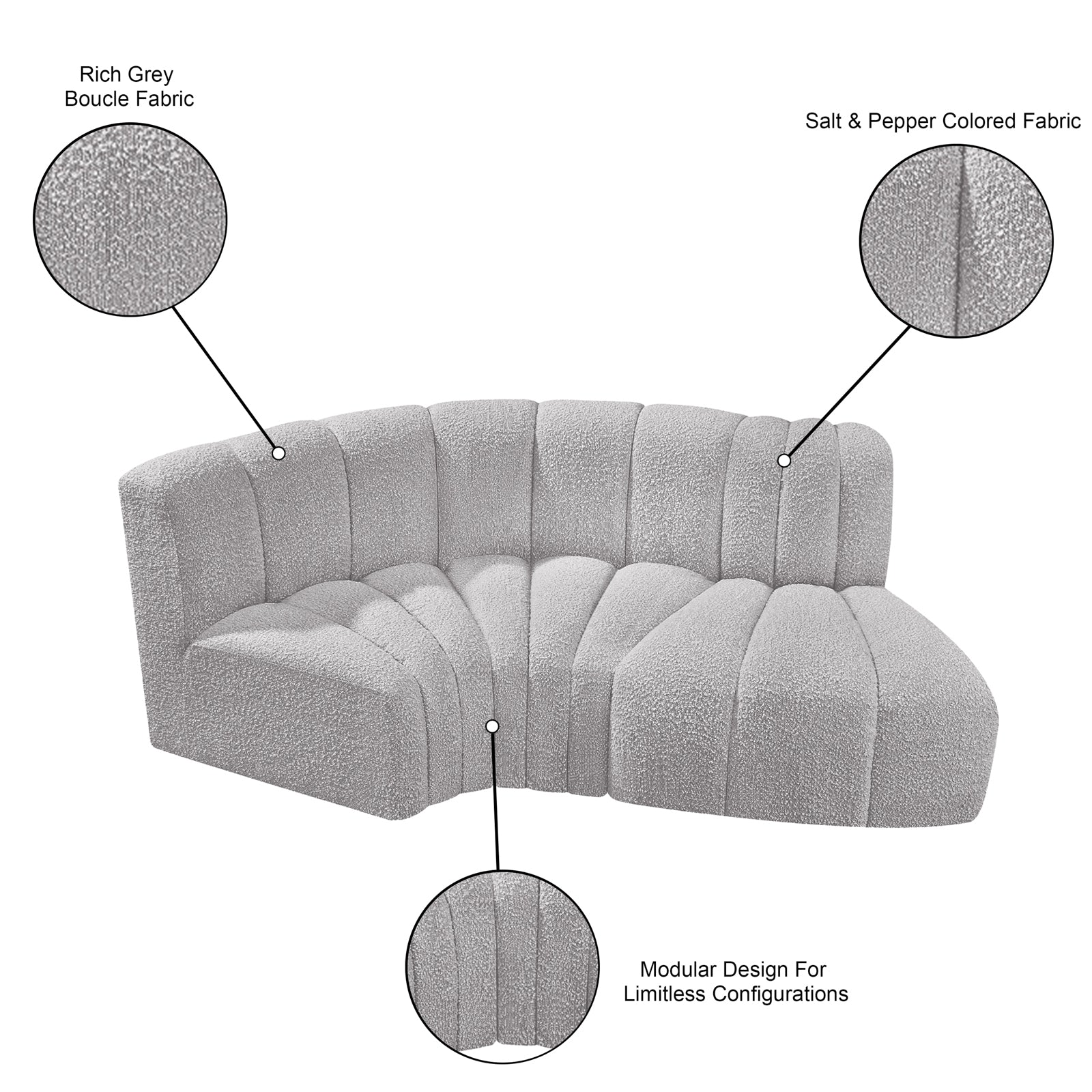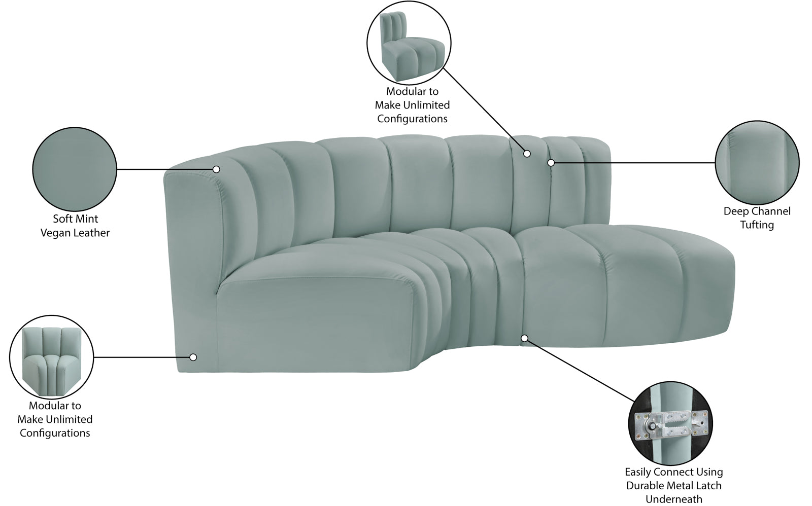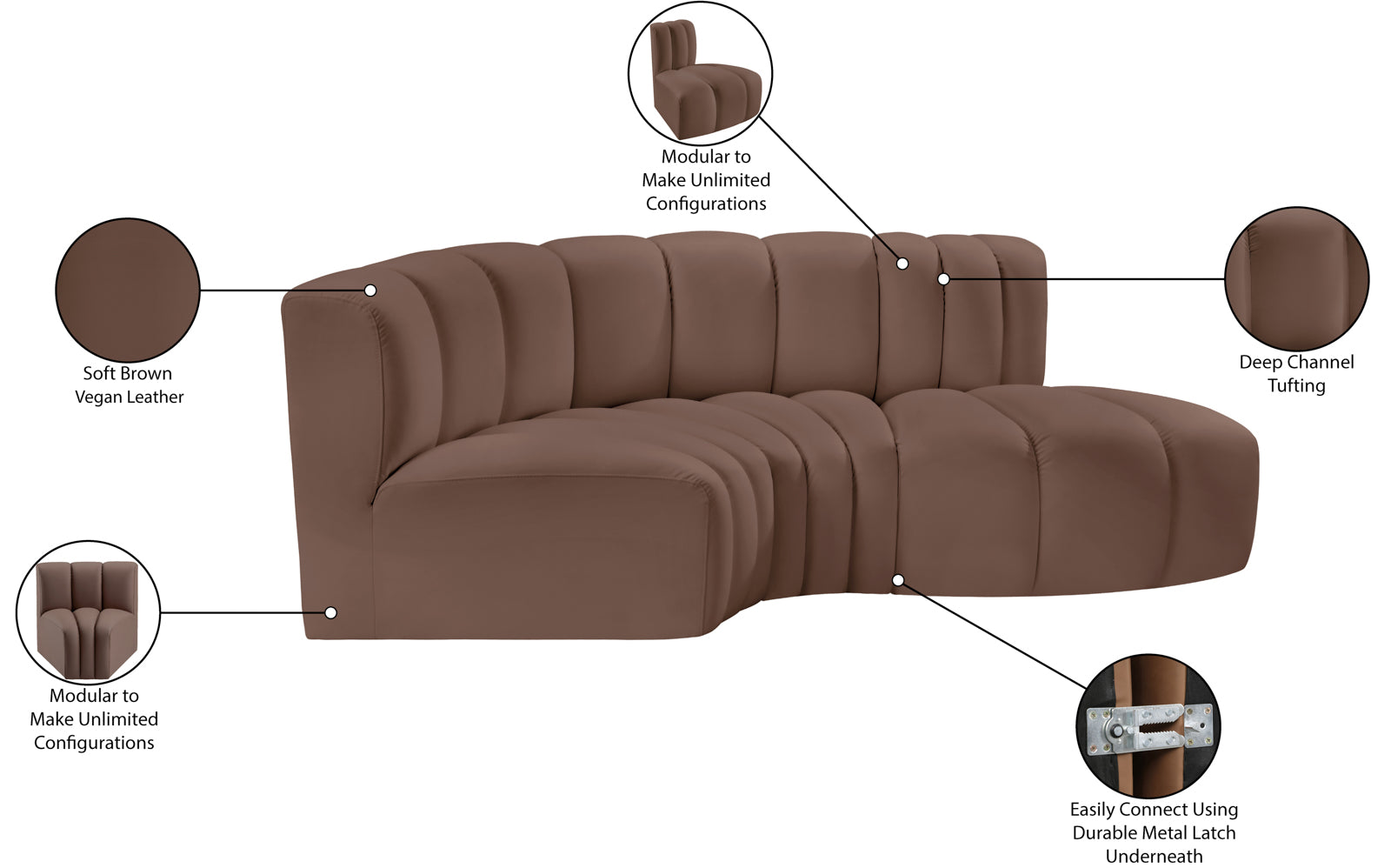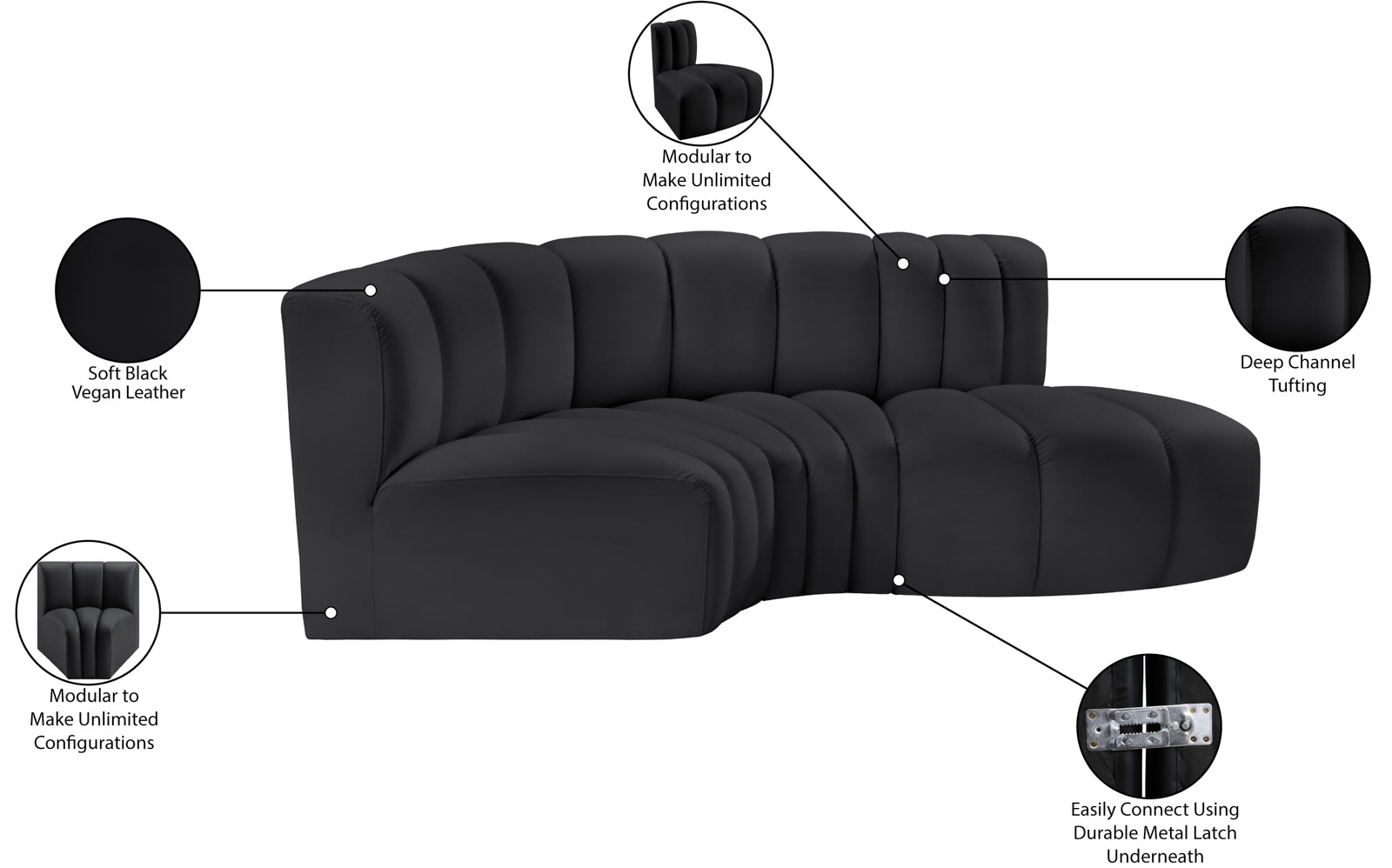 - Color: 101Black-S3D Arc Black Vegan Leather Modular Sofa - Black Vegan Leather
