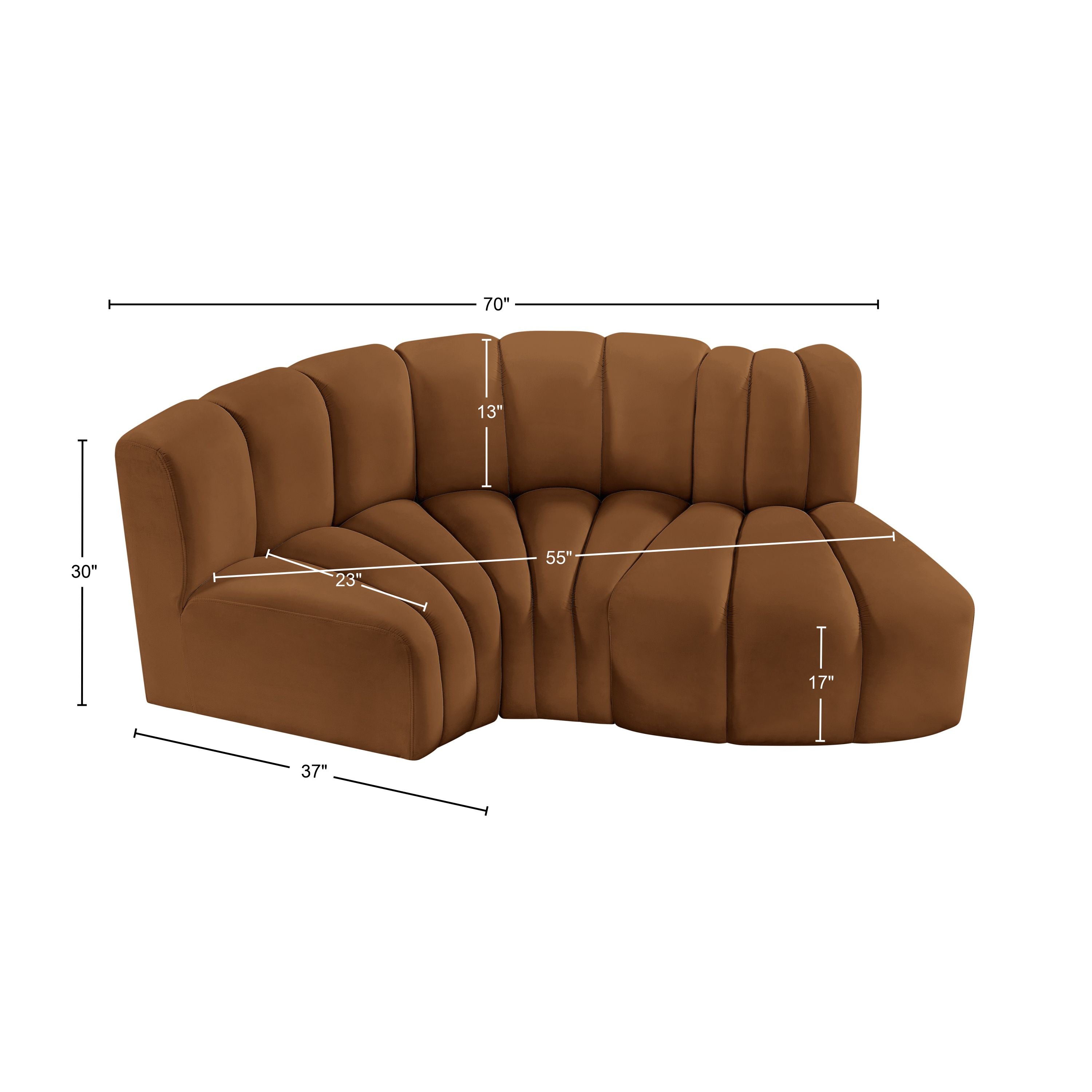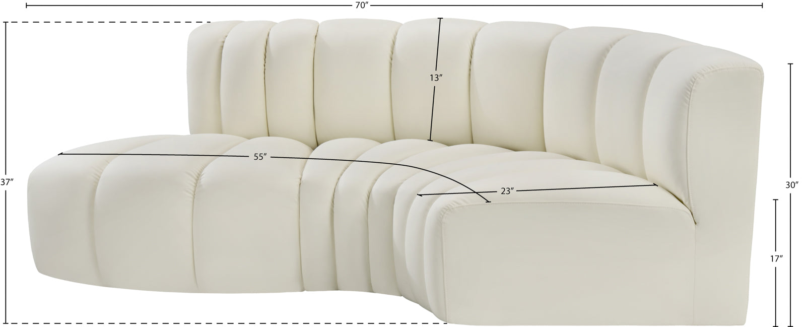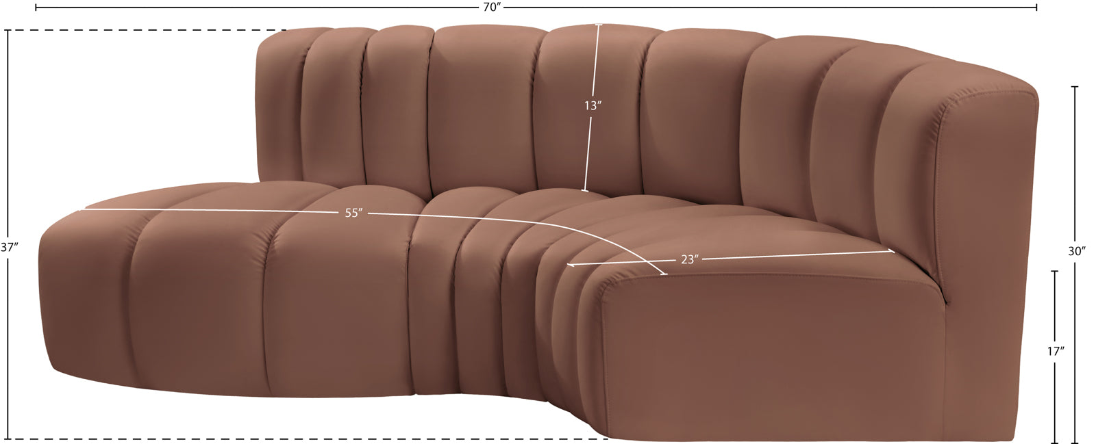 - Dimensions: 101Black-S3D Arc Black Vegan Leather Modular Sofa - 70" W x 37" D x 30" H