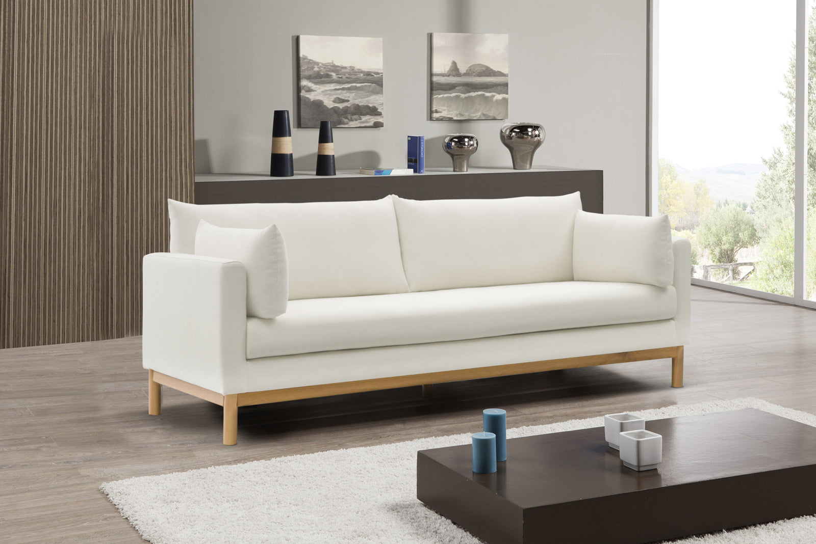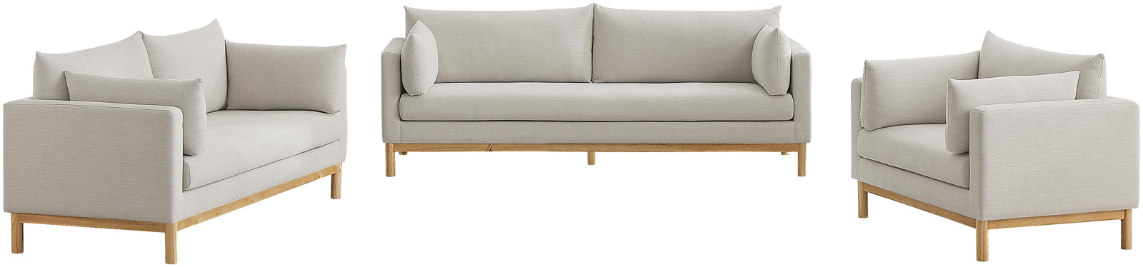 - Material: 157Beige-S Langham Beige Linen Textured Fabric Sofa - Linen Textured Fabric / Solid Wood / Foam with Natural