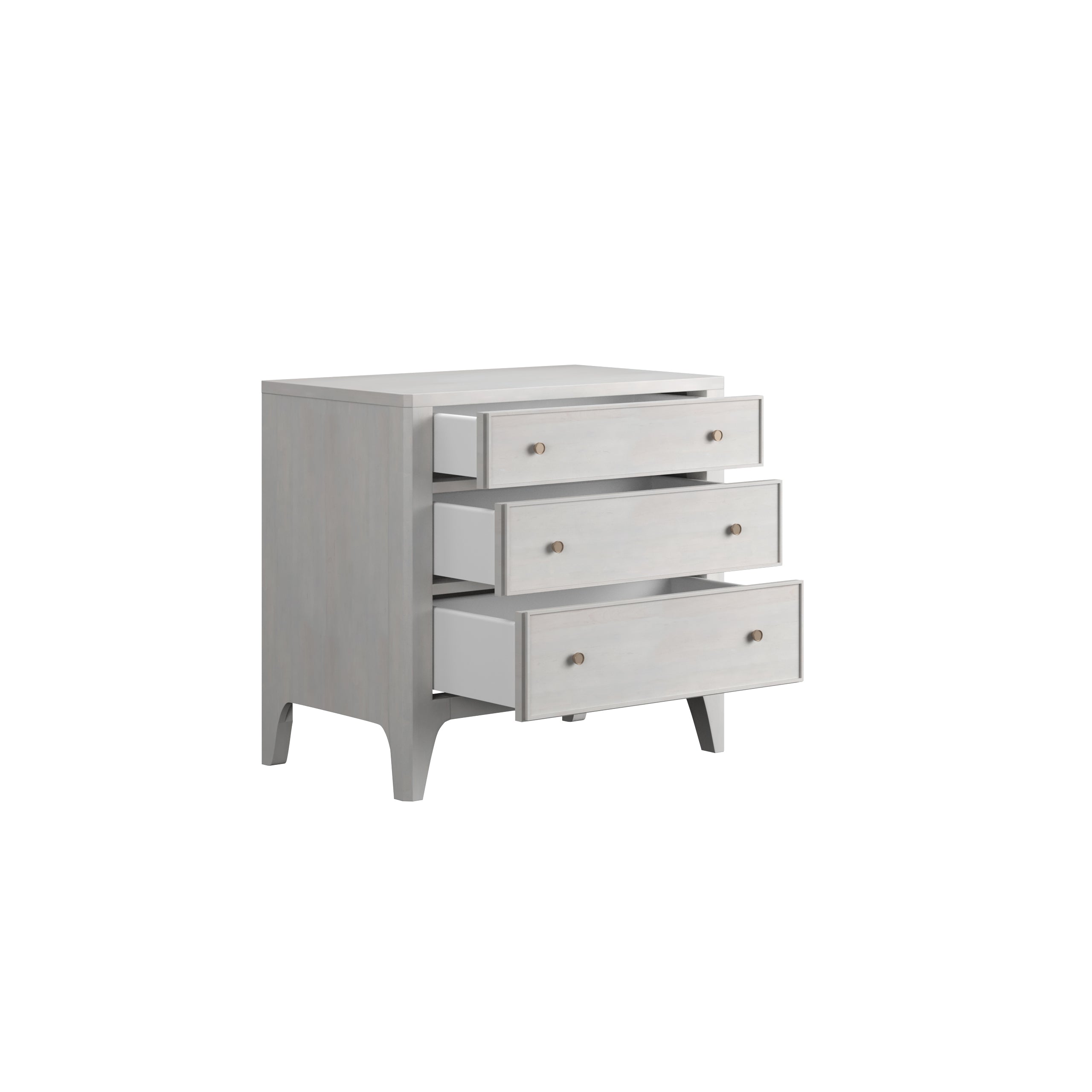 - Three (3) drawers for storage, Dovetail drawer construction with spft-close undermount glides, Bottom drawer features cedar lining, Dove Grey veneer drawer fronts, Petite brushed nickel hardware, Legs feature adjustable levelers. Integrated USB Charging Port: Conveniently charge devices right at your bedside