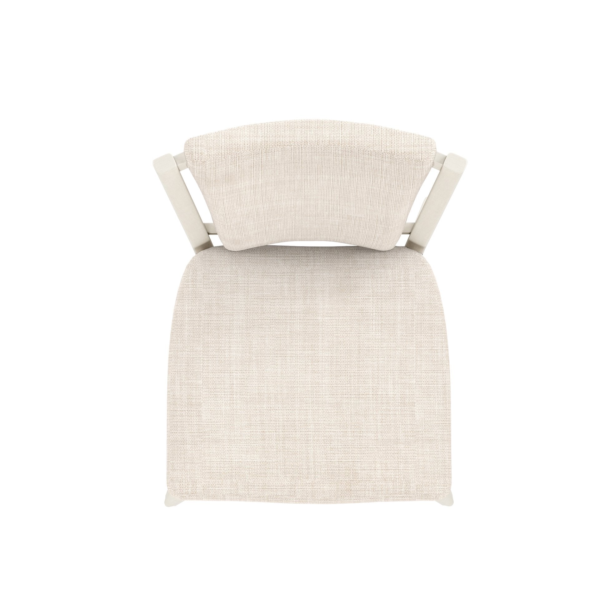 - Upholstered seat and back panels feature a finely tailored, 100% polyester linen-look fabric