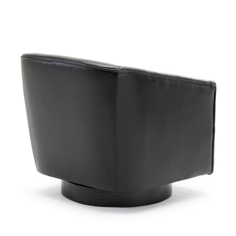 - Wooden swivel base finished in black