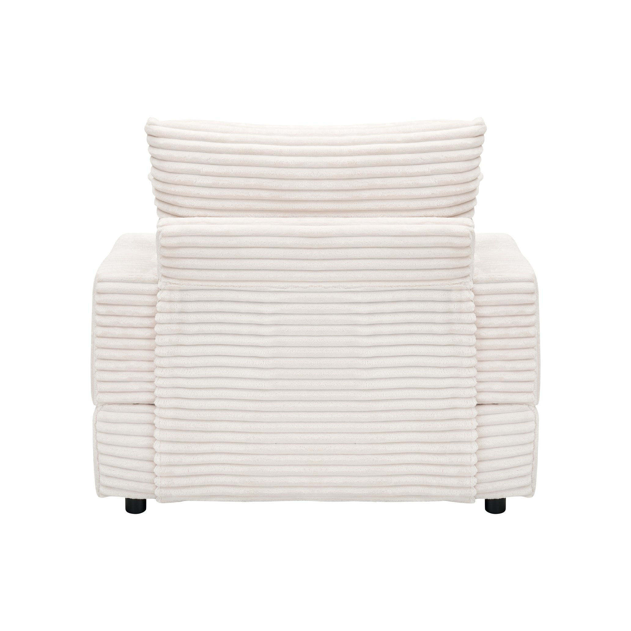 This elegant corduroy-upholstered armchair and ottoman set combines modern style with everyday comfort — ideal for living rooms, bedrooms, or cozy reading nooks. Plush sponge cushioning, a supportive spring seat structure, and two matching toss pillows create a welcoming single-seater experience, while durable construction and thoughtful details (like a built-in cup holder) make it practical for daily use.