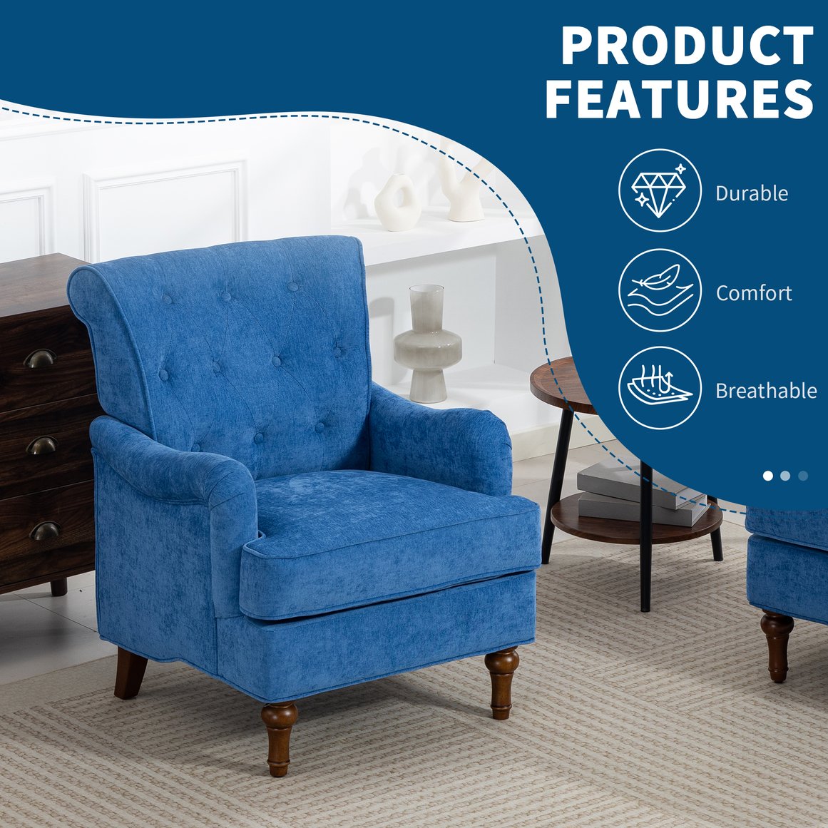 Sink into modern comfort with this plush chenille club chair—designed for everyday relaxation, reading, or adding a pop of color to any room. The thoughtfully padded seat, ergonomic curved back, and retro wooden legs combine style and support so you can unwind in comfort without sacrificing durability. Ideal for living rooms, bedrooms, offices, or cozy corners, this versatile accent chair balances compact sizing with a robust build.