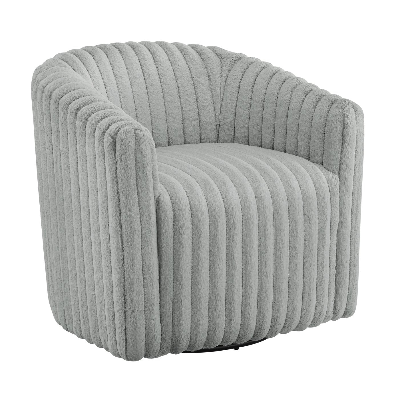 Sink into luxurious comfort with the Alexa Ultra Plush Wide Cord-like Swivel Barrel Chair — a modern statement piece that pairs contemporary style with everyday functionality. Upholstered in a soft wide-wale cord-like polyester, this barrel-style chair offers supportive coil-spring seating and a smooth 360° swivel, making it ideal for relaxing, reading, or entertaining in your living room, den, or bedroom. Ready to use right out of the box, it delivers both form and function without the hassle of assembly.