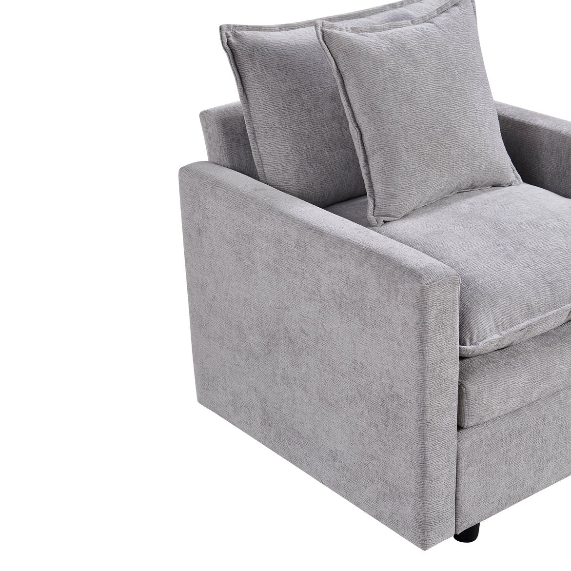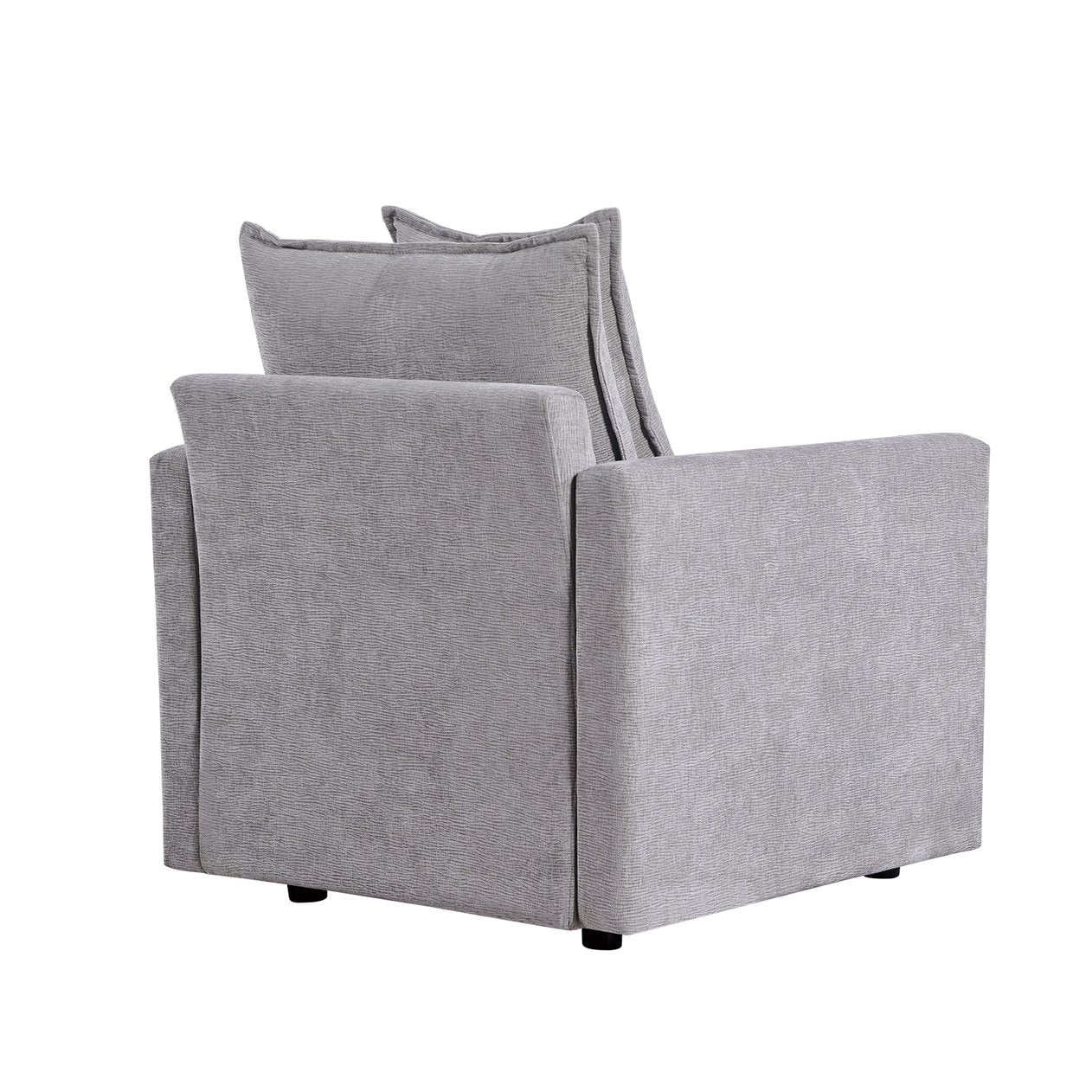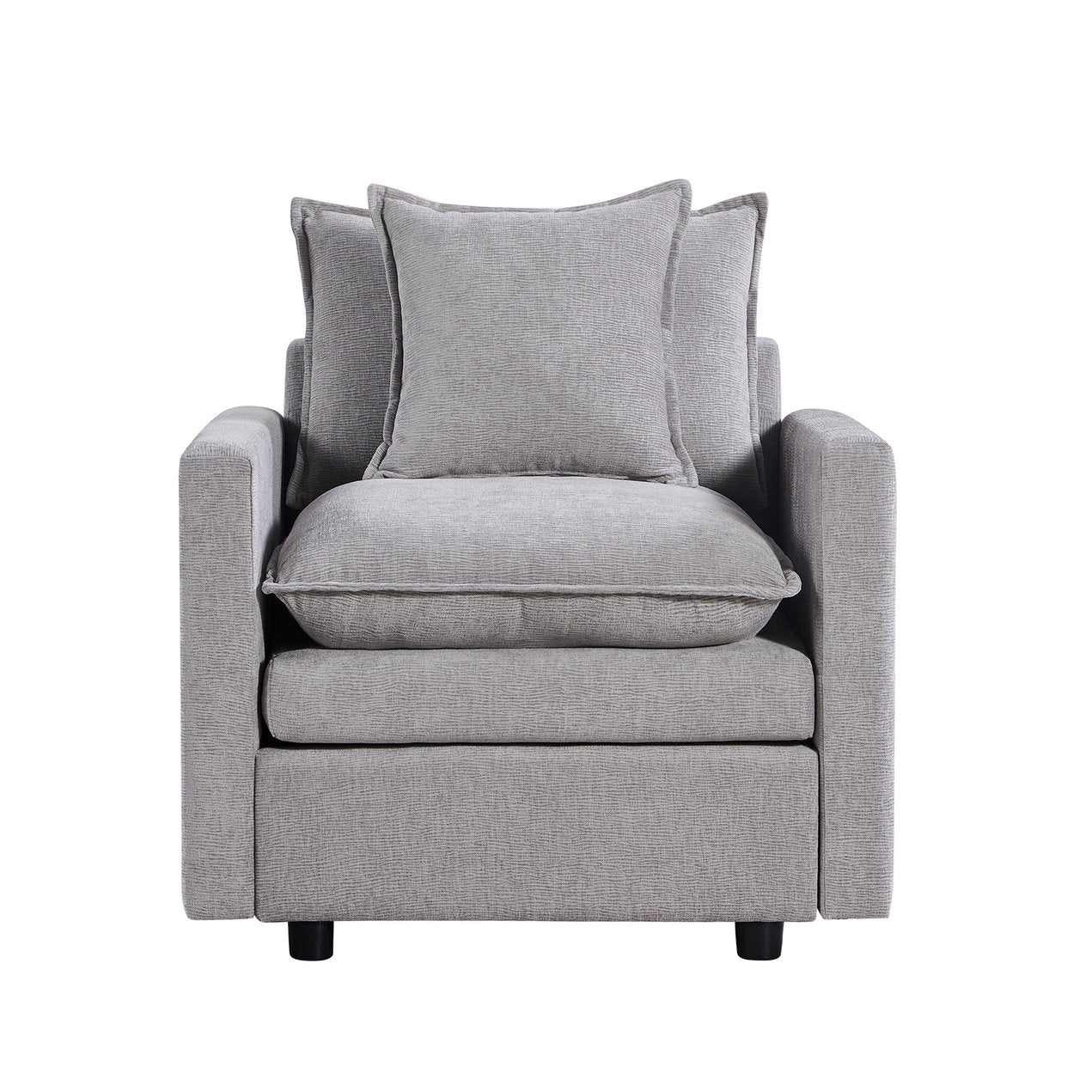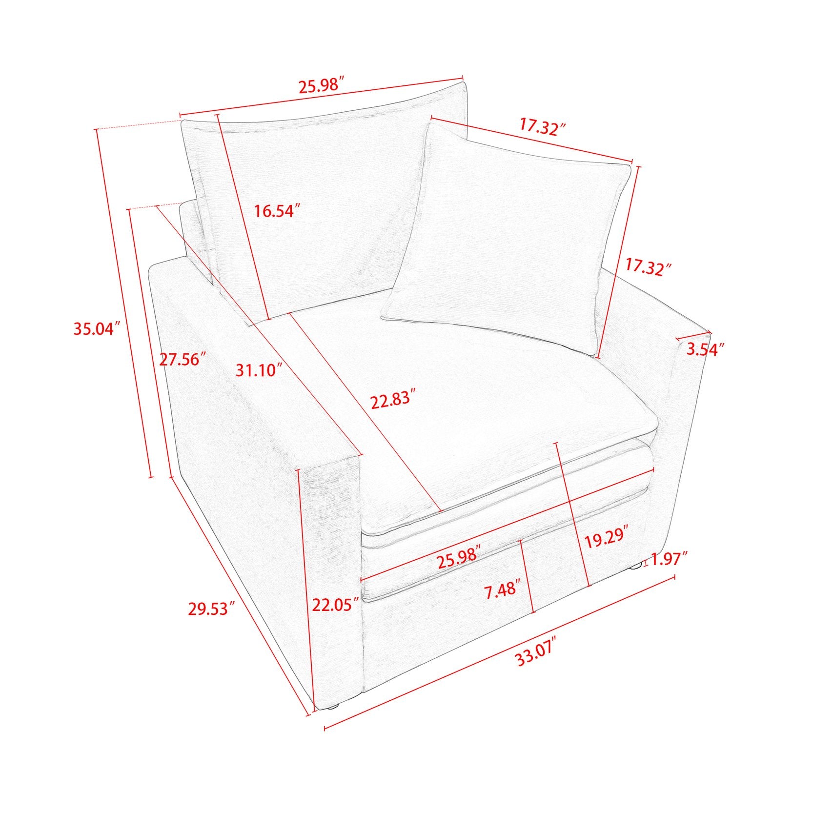 Sink into luxurious comfort with this chenille-upholstered deep single-seat armchair — a stylish, cozy addition to living rooms, reading nooks, or bedrooms. Crafted with a solid wood frame and plush high-density foam cushioning, it provides supportive seating and a soft tactile experience. The neutral chenille fabric and included toss pillow make it easy to pair with a variety of decors, while thoughtful proportions and durable construction ensure long-lasting use.