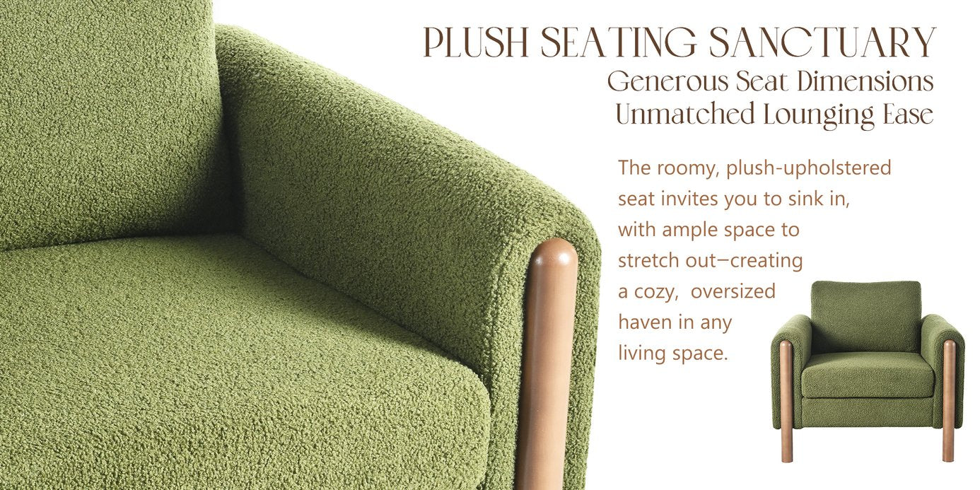 Sink into plush comfort and mid‑century style with this oversized accent chair. Upholstered in soft teddy velvet, the chair combines a wide, supportive seat, gently curved handrails, and refined tufted detailing to create an inviting focal point for living rooms, bedrooms, or reading nooks. Solid walnut‑finish legs add warmth and stability while the generous proportions deliver cloud‑like comfort without sacrificing modern elegance.