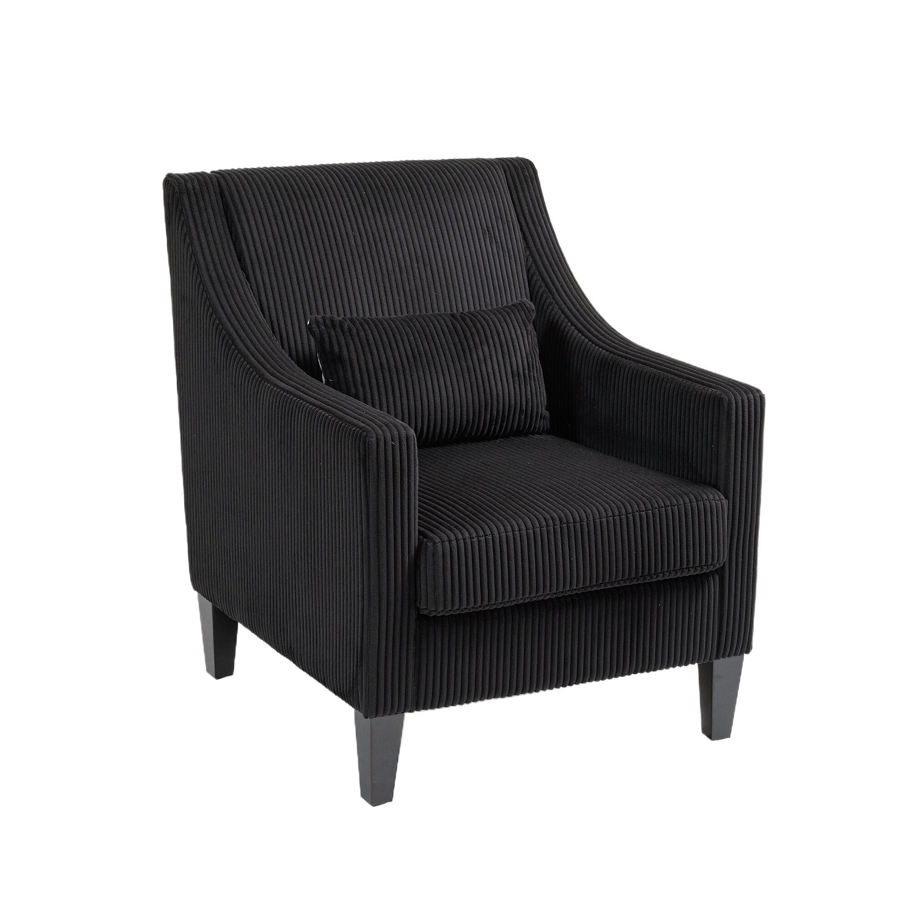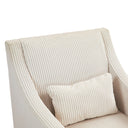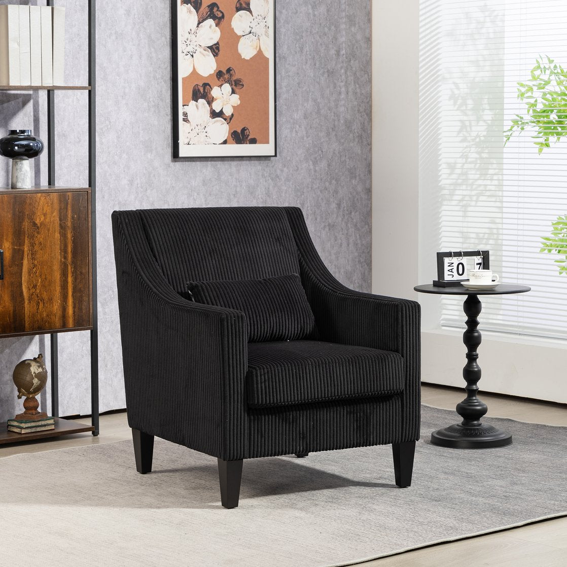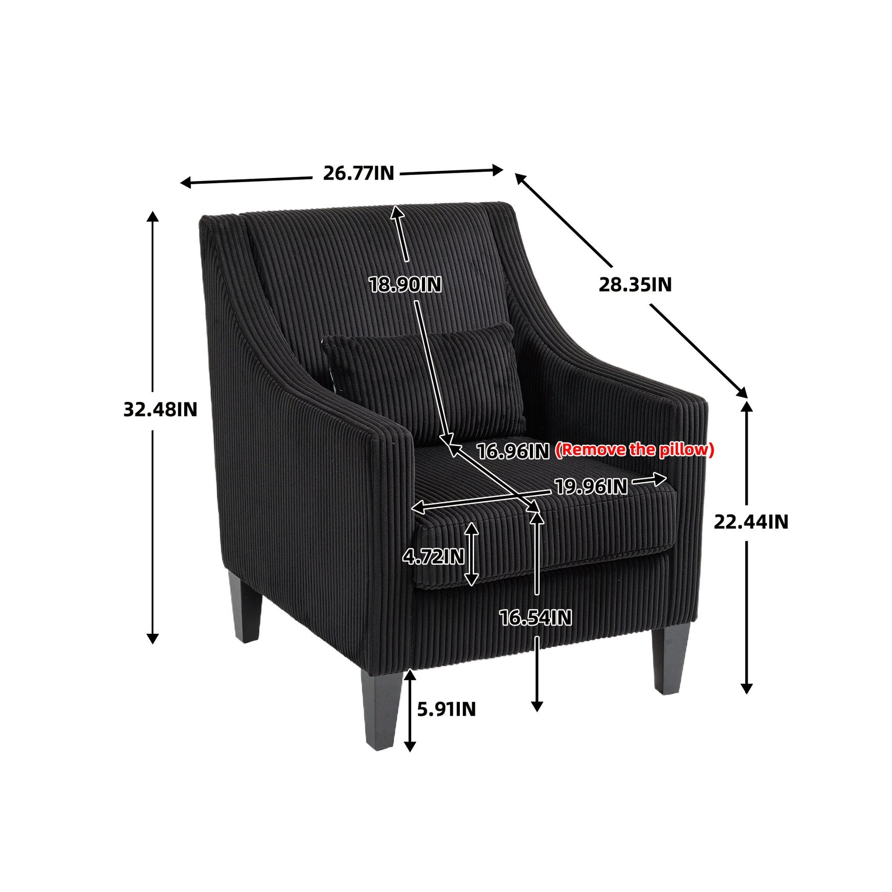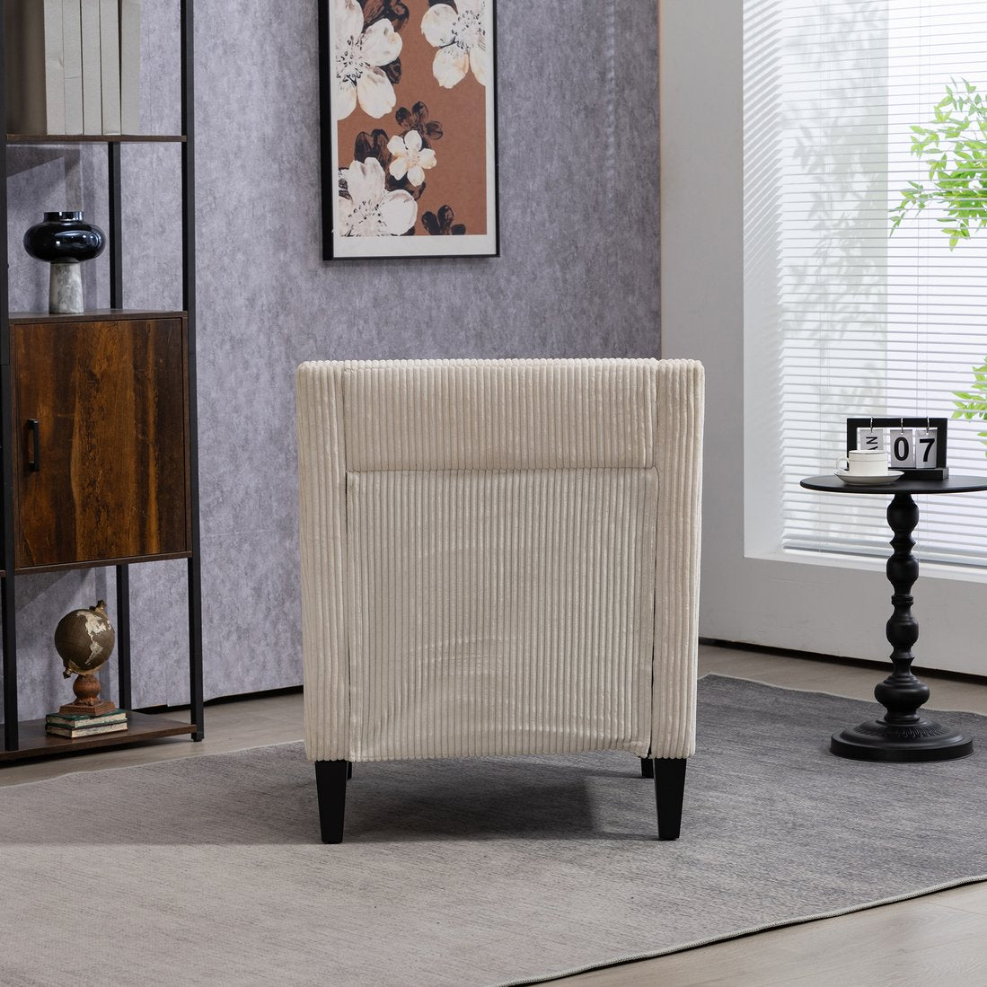 Bring modern comfort and stylish texture to any room with this cozy beige corduroy accent chair. Built on a sturdy solid-wood frame and padded with thick foam, the scooped arms and included lumbar pillow pair supportive ergonomics with a contemporary silhouette—perfect for apartments, bedrooms, offices, waiting rooms, or as a statement piece in living and dressing areas. Easy to assemble and sized for small spaces, this chair delivers durable everyday seating with refined, timeless appeal.