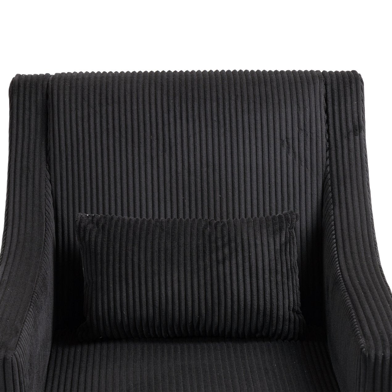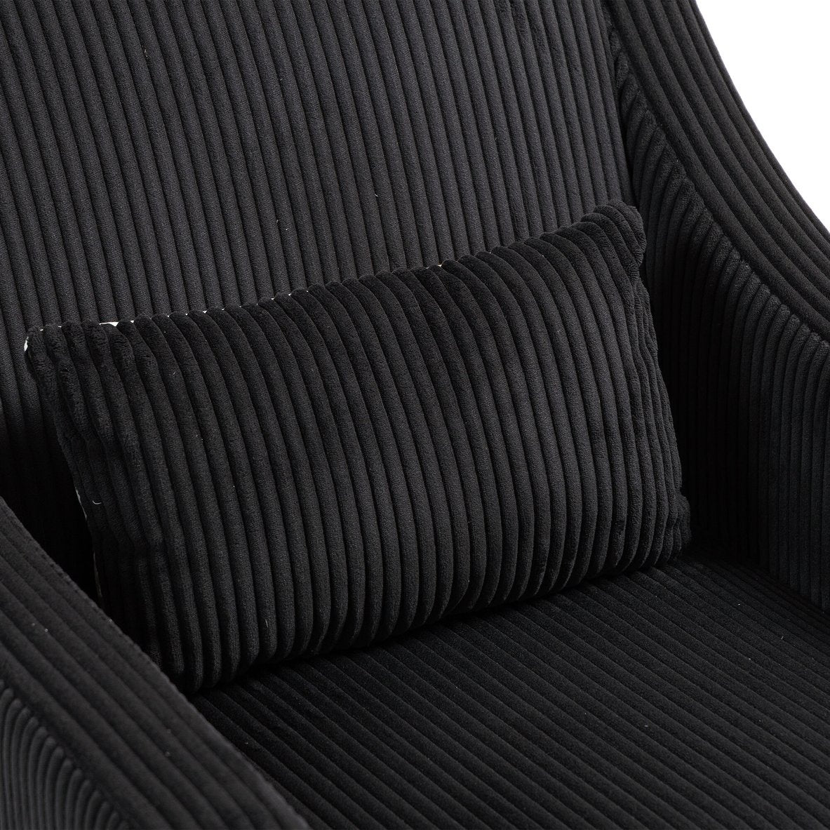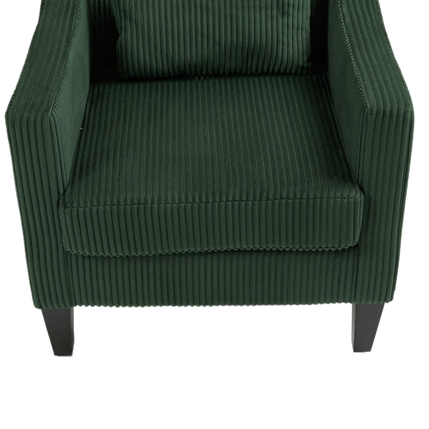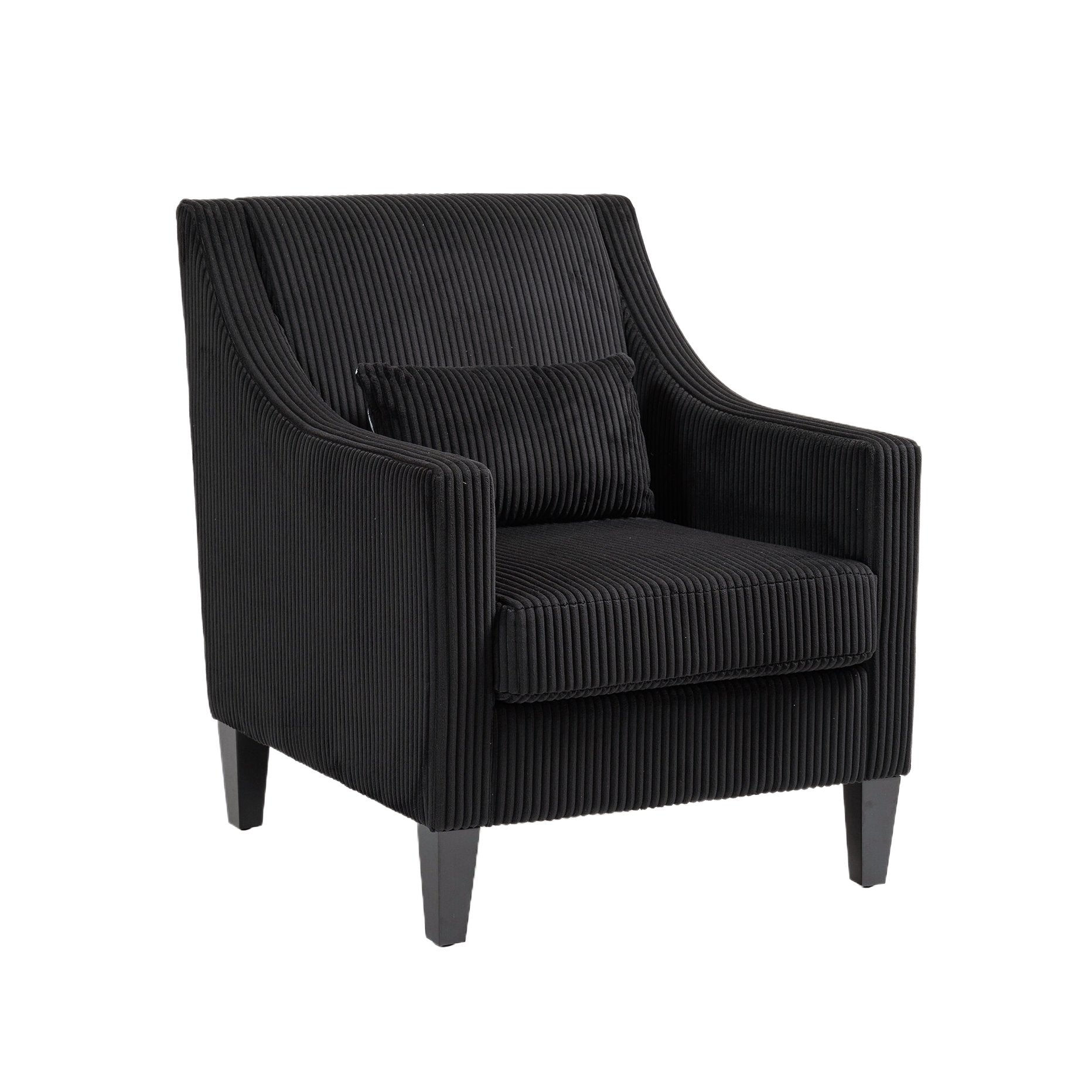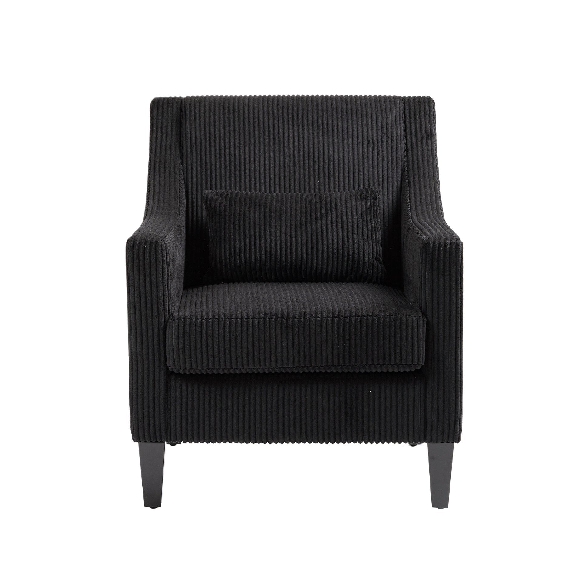 Bring modern comfort and stylish texture to any room with this cozy beige corduroy accent chair. Built on a sturdy solid-wood frame and padded with thick foam, the scooped arms and included lumbar pillow pair supportive ergonomics with a contemporary silhouette—perfect for apartments, bedrooms, offices, waiting rooms, or as a statement piece in living and dressing areas. Easy to assemble and sized for small spaces, this chair delivers durable everyday seating with refined, timeless appeal.