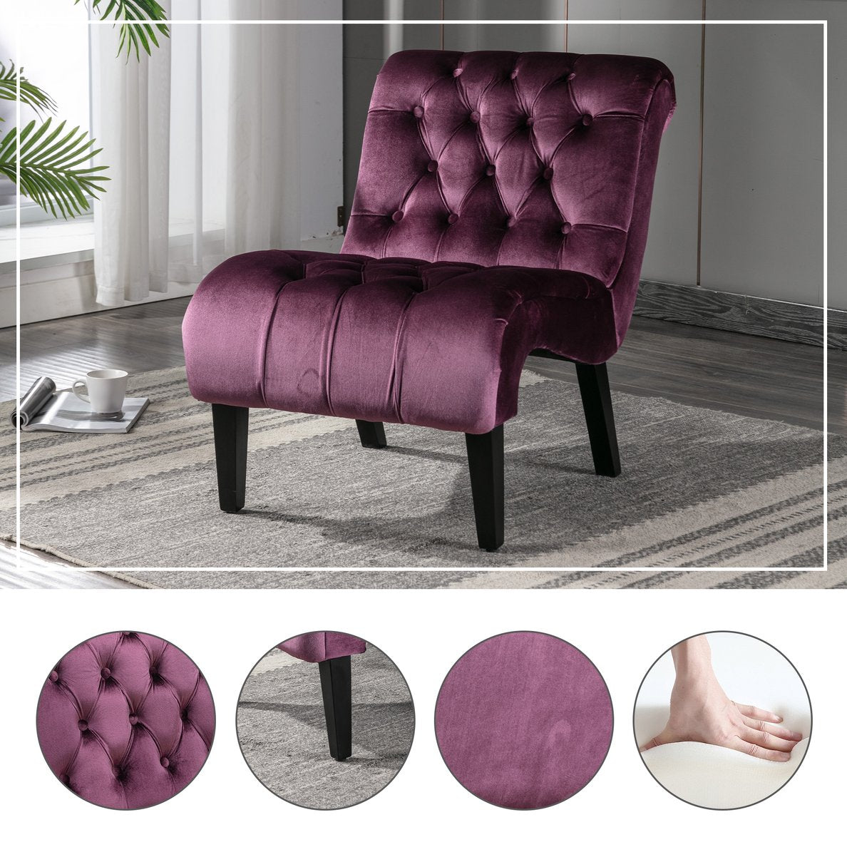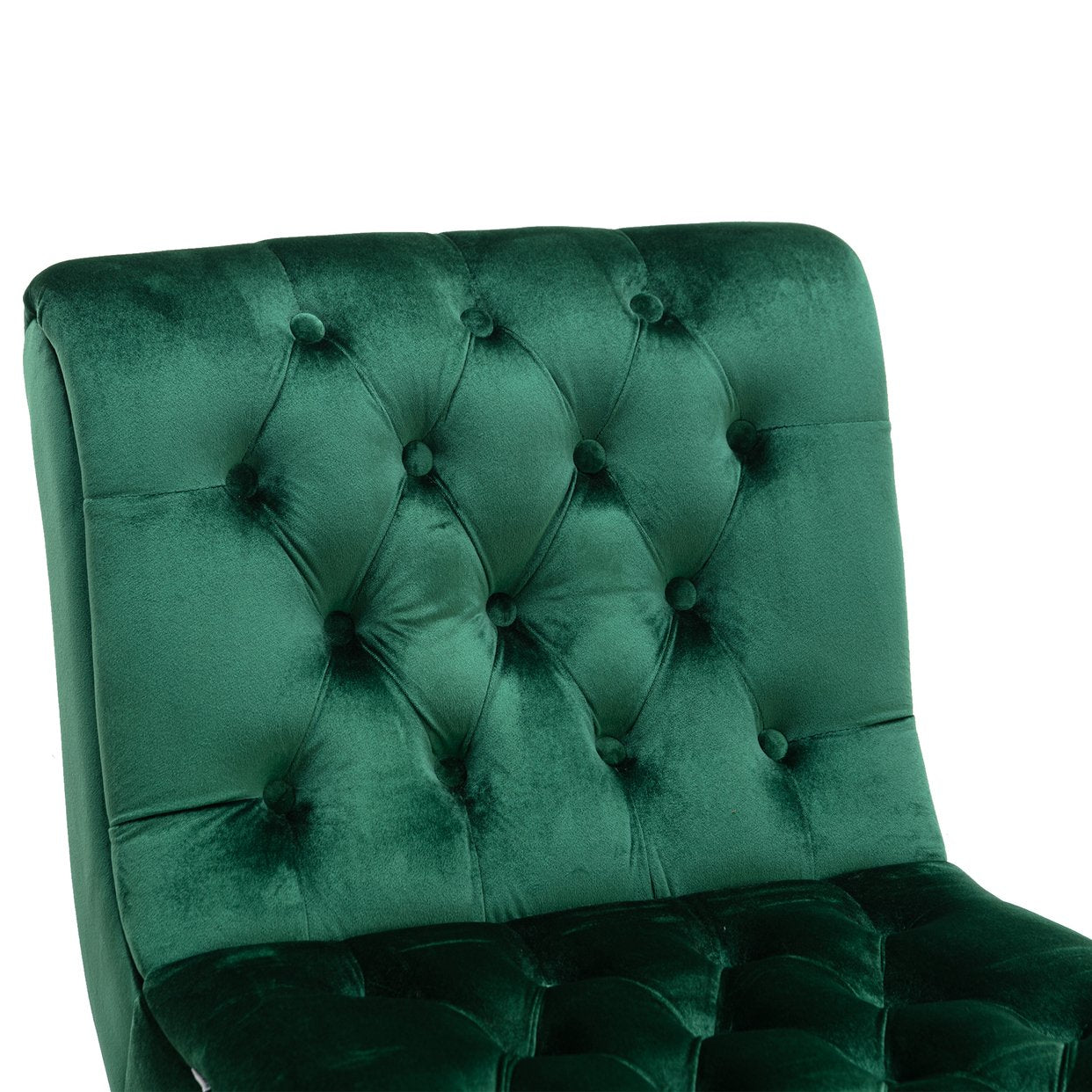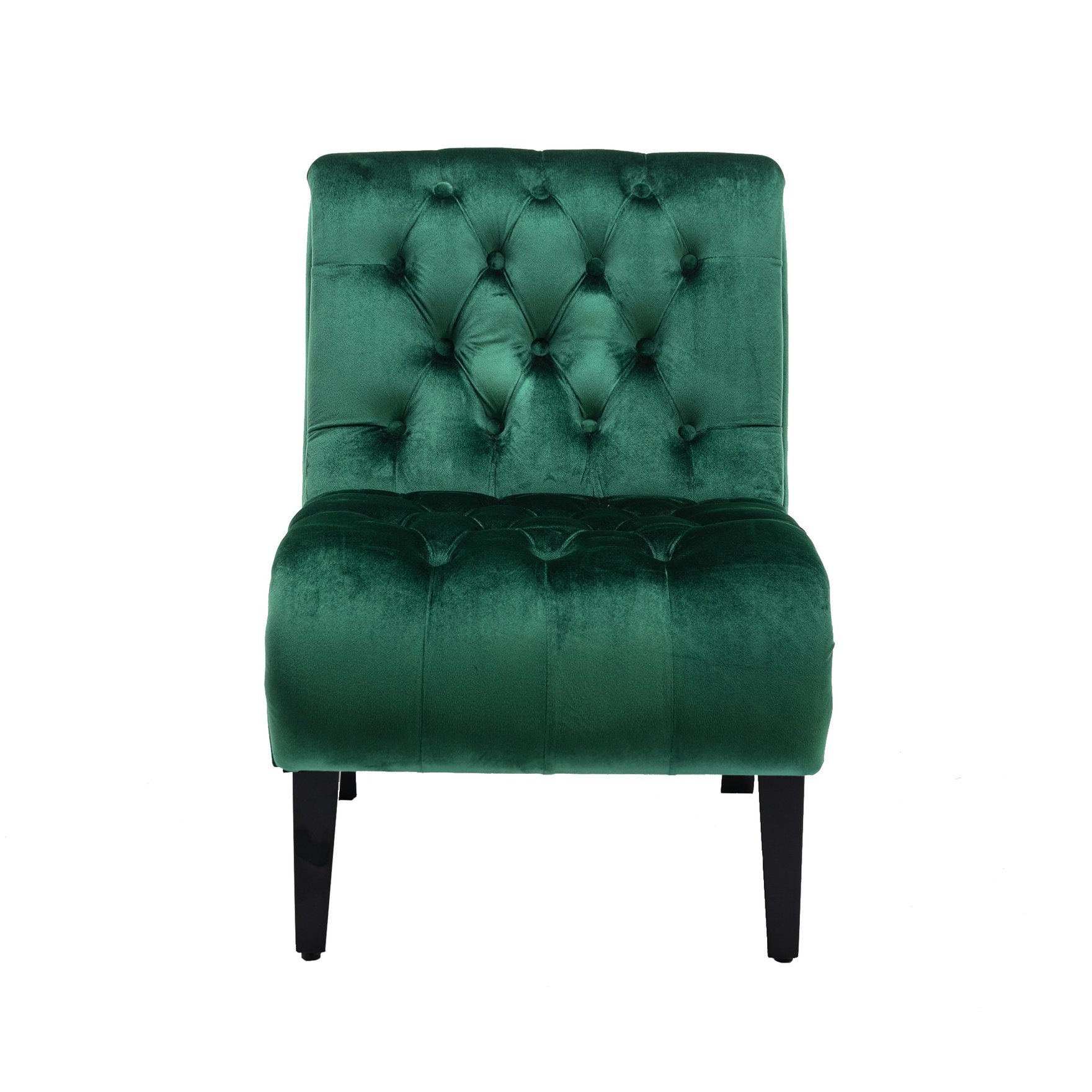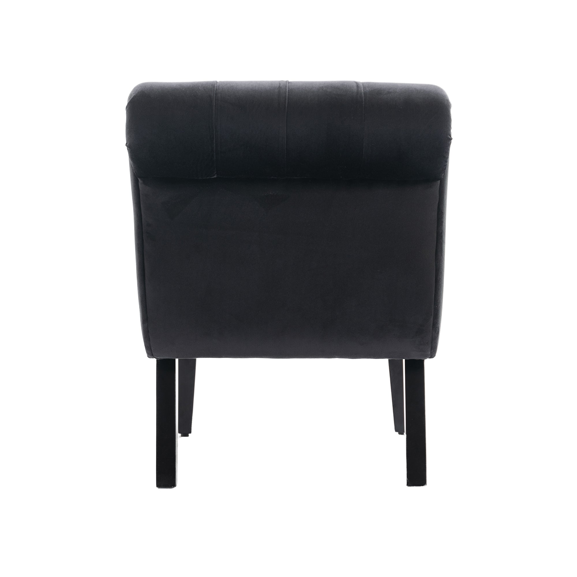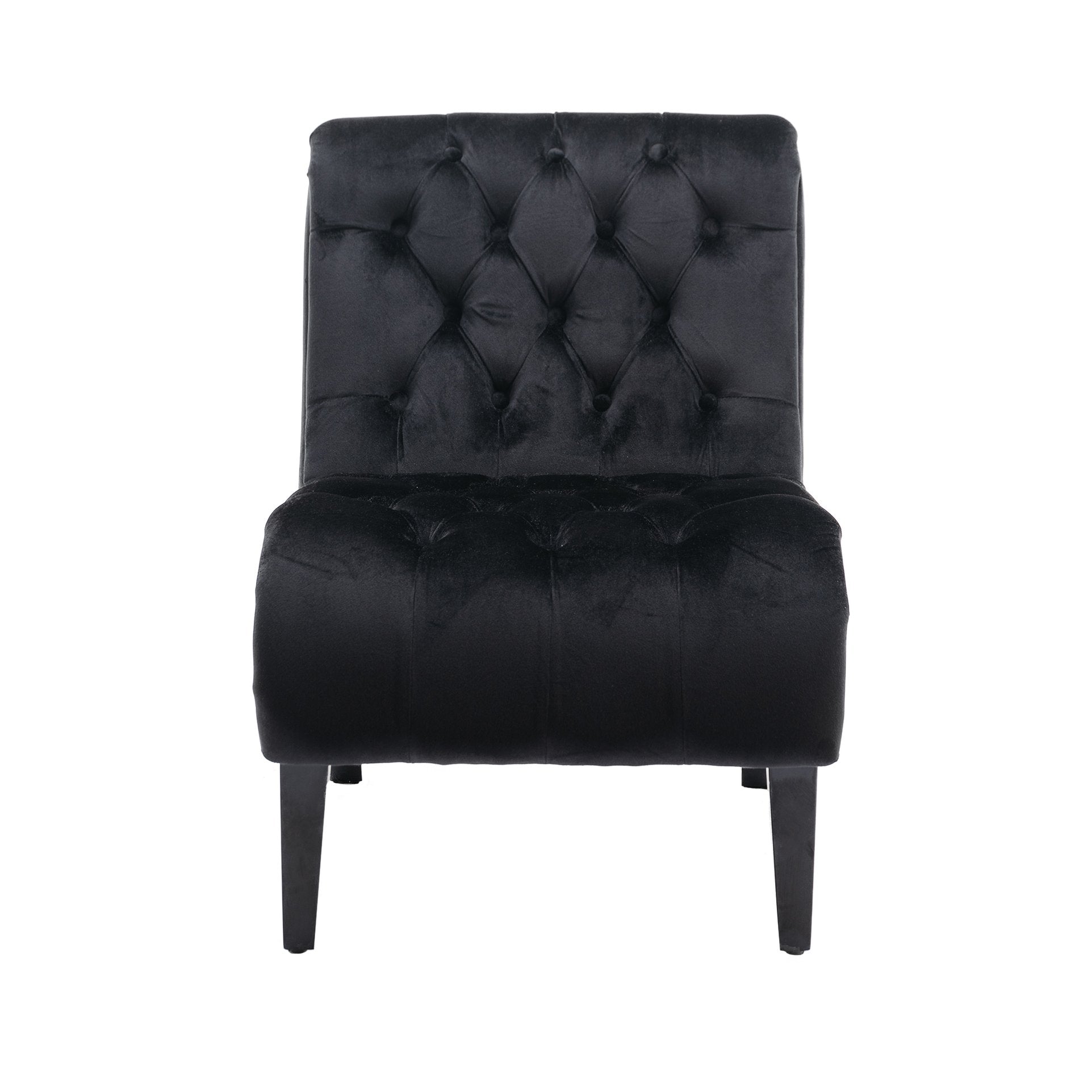Bring a touch of modern elegance and cozy comfort to any room with this armless velvet accent chair. Upholstered in soft pink velvet and supported by sturdy wooden legs, the chair combines a compact footprint with plush seating—perfect for living rooms, bedrooms, dressing areas, home offices, or as extra seating in dining spaces. Its curved silhouette, button-tufted back, and supportive foam padding create an inviting place to relax, read, or chat.