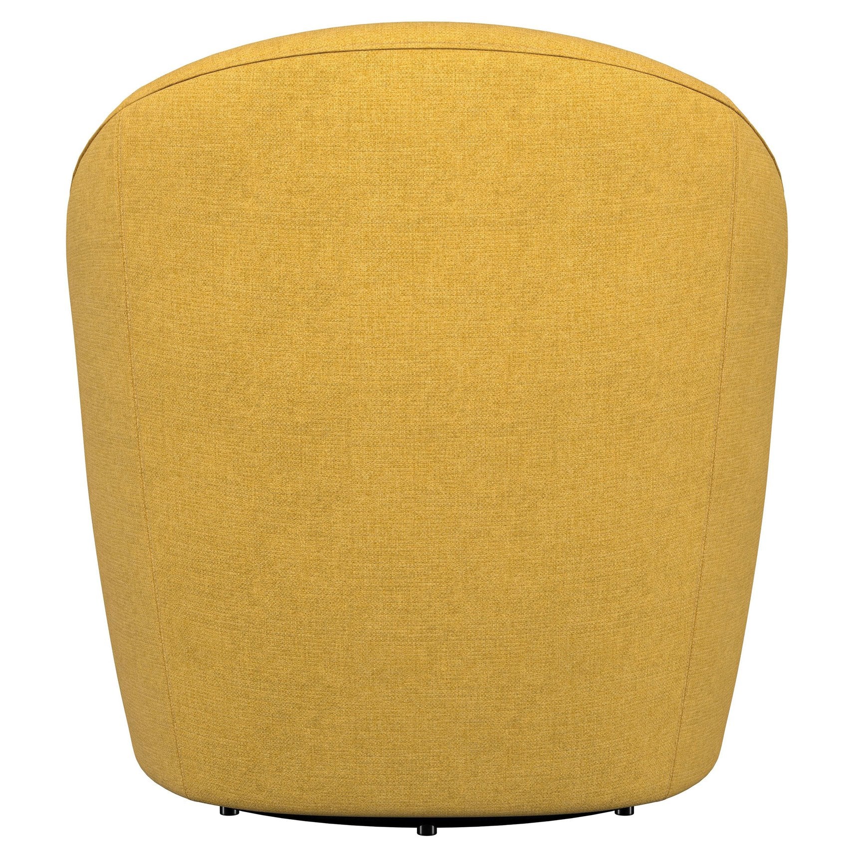 Add a vibrant focal point to your living space with this mustard yellow upholstered swivel chair. Its rounded barrel back and gently sloping arms create an open, modern silhouette that balances style and comfort—ideal for reading nooks, conversational groupings, or as an accent in a den or bedroom. The smooth swivel base increases versatility, making it easy to turn toward conversation, the TV, or a window view.