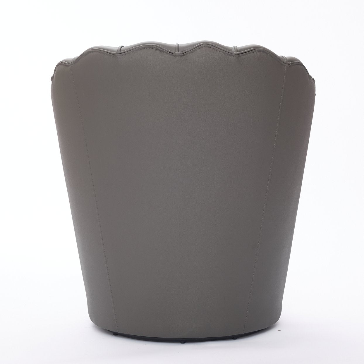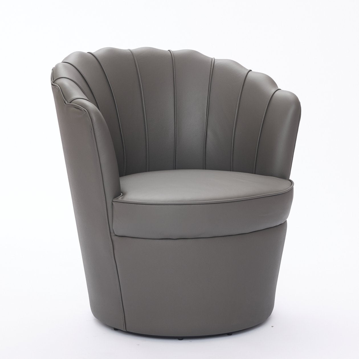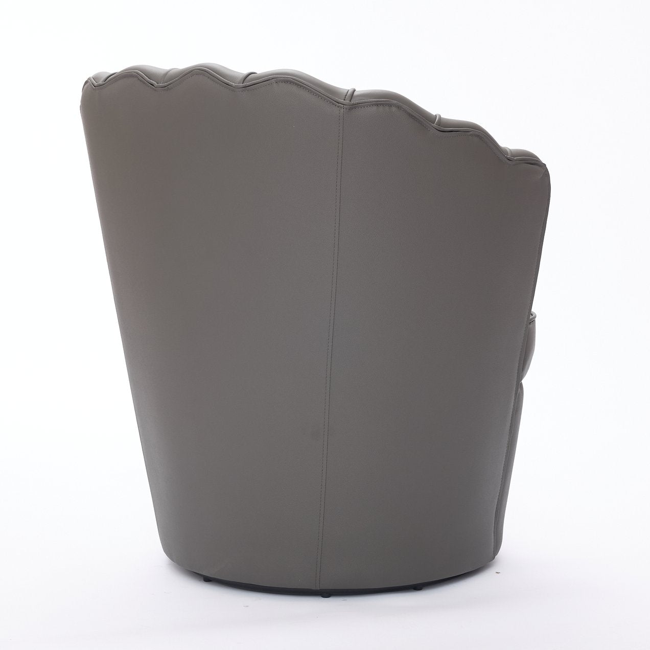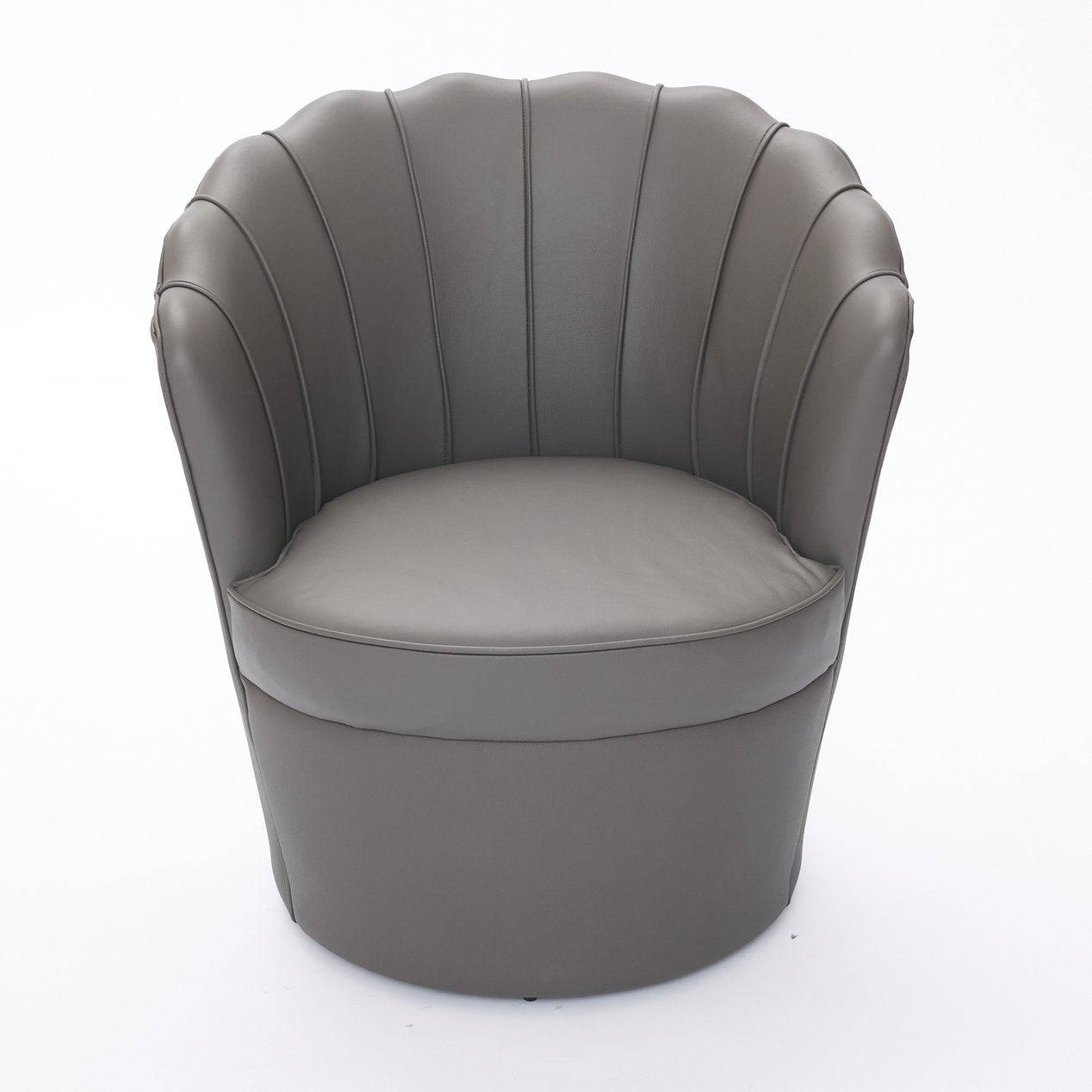 Experience refined comfort and modern style with this Gray Petal Swivel Chair — a sculpted wing-back seat upholstered in genuine top-grain leather with a smooth 360° metal swivel base. Its curved, fluted “petal” back provides ergonomic shoulder support while adding a statement silhouette to home offices, dining areas, or accent corners. Thoughtful construction combines plush foam cushioning, durable wood and metal internals, and easy-care leather to deliver both lasting comfort and elevated design.