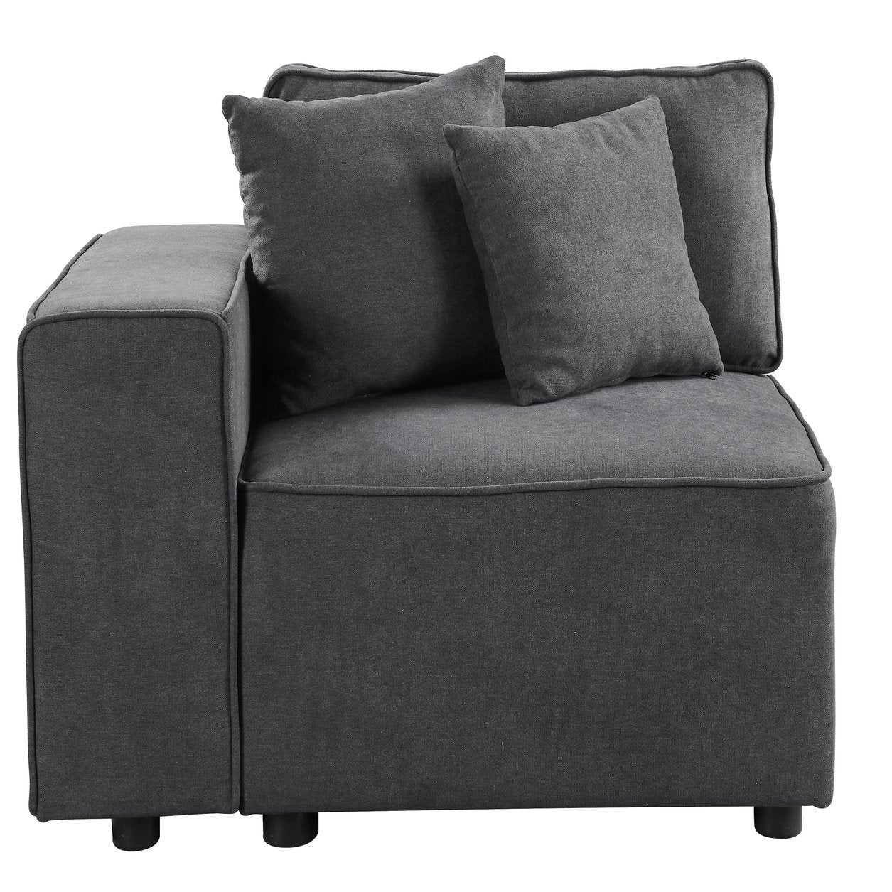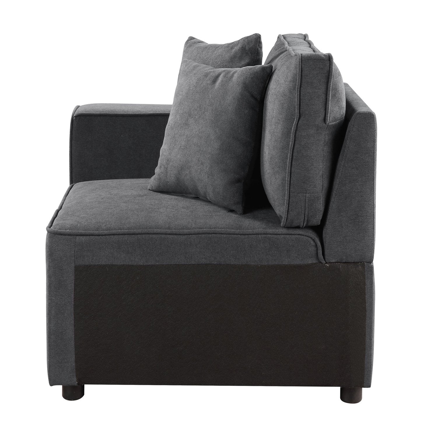 Give your space a contemporary upgrade with this grey left-facing accent chair—designed for both style and comfort. The clean silhouette and combination of a tight seat with a loose back cushion create a tailored look while offering adjustable support. Perfect for living rooms, home offices, reading nooks, or lounge areas, it includes two coordinating throw pillows to enhance comfort and visual appeal.
